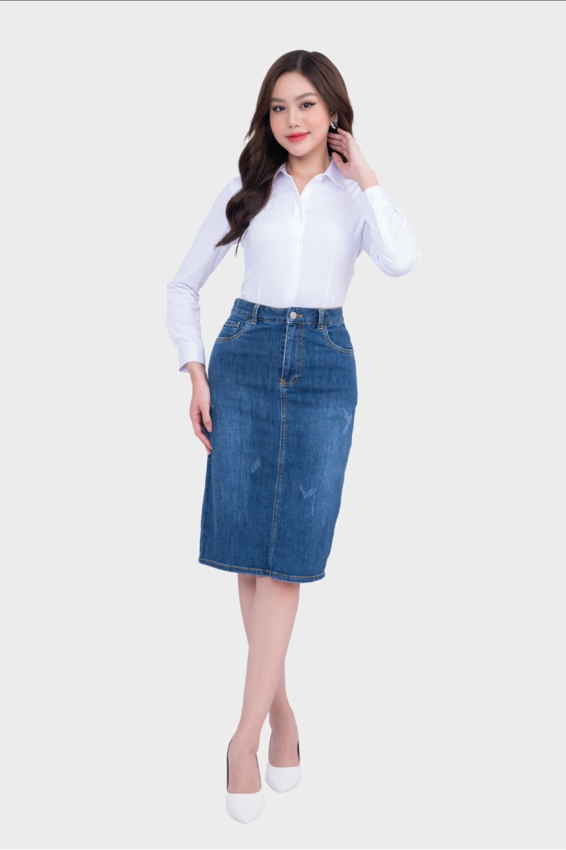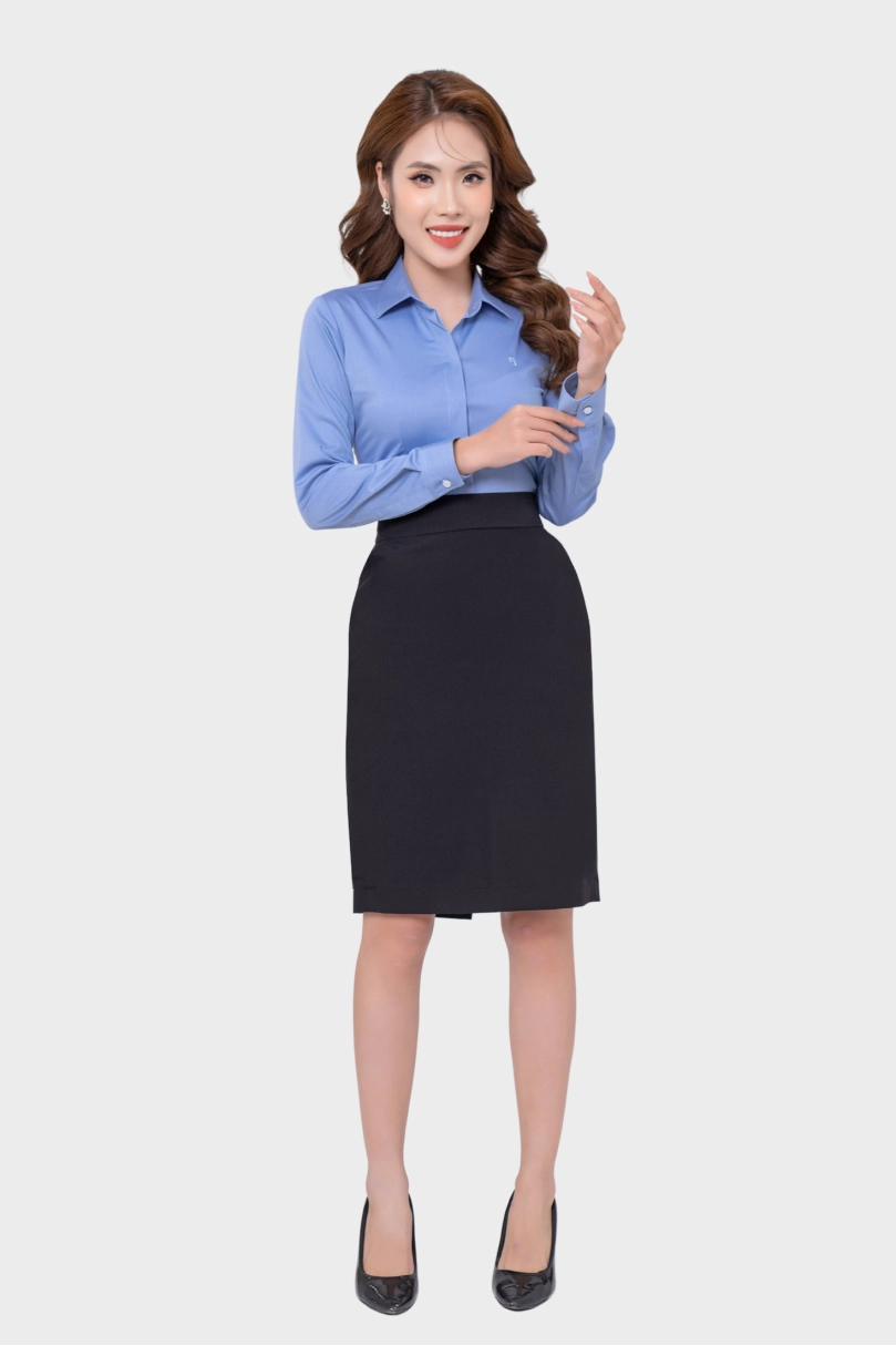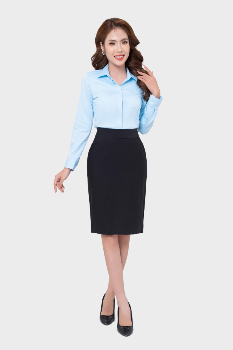 Chân váy nữ Thái Hòa 25CVW-271 dáng bút chì cạp cao 2 lớp form dài qua gối cạp 1 khuy
