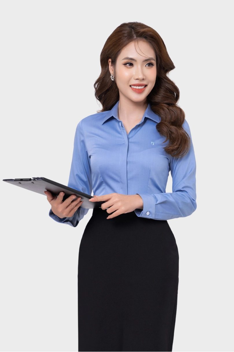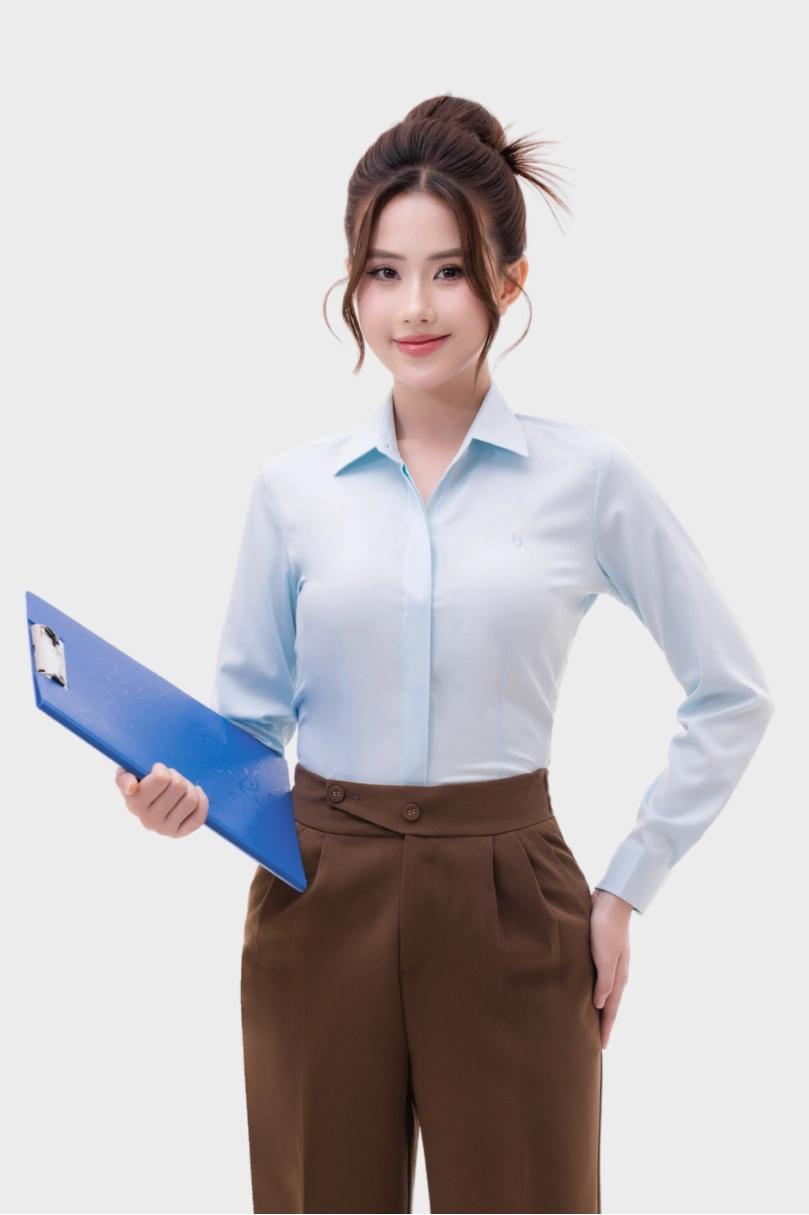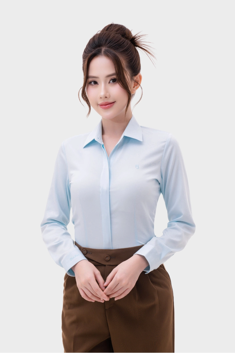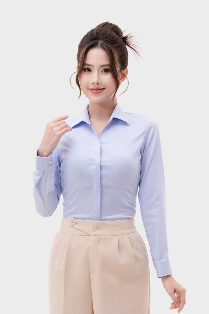 - Áo sơ mi các màu nữ công sở Thái Hòa thiết kế giấu cúc dài tay sợi tre 23ASW-103