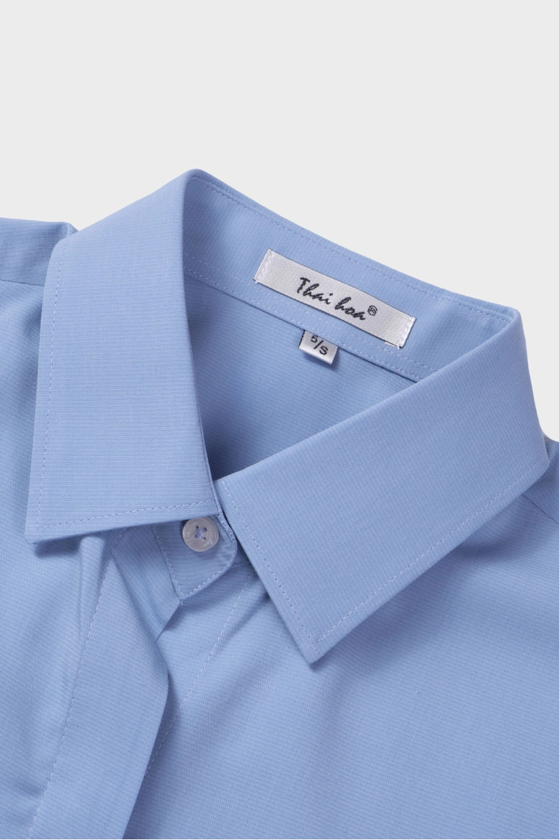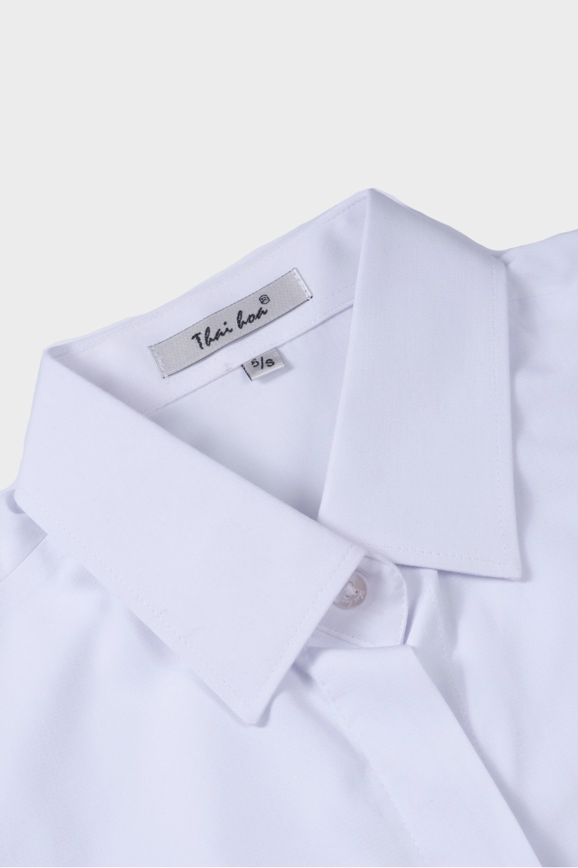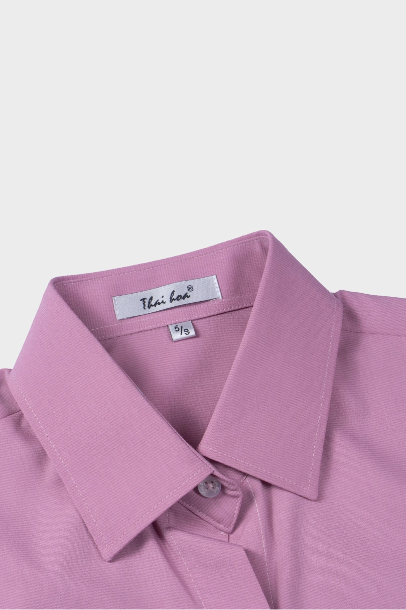 Áo sơ mi nữ ngắn tay Thái Hòa 25ASW-267 vải Bamboo Cotton cao cấp bản nẹp khuy có chiết eo cao cấp