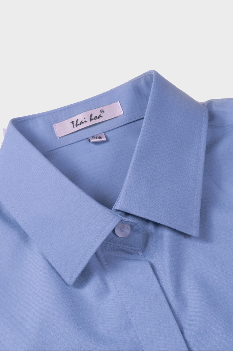 Áo sơ mi nữ ngắn tay Thái Hòa 25ASW-267 vải Bamboo Cotton cao cấp bản nẹp khuy có chiết eo cao cấp