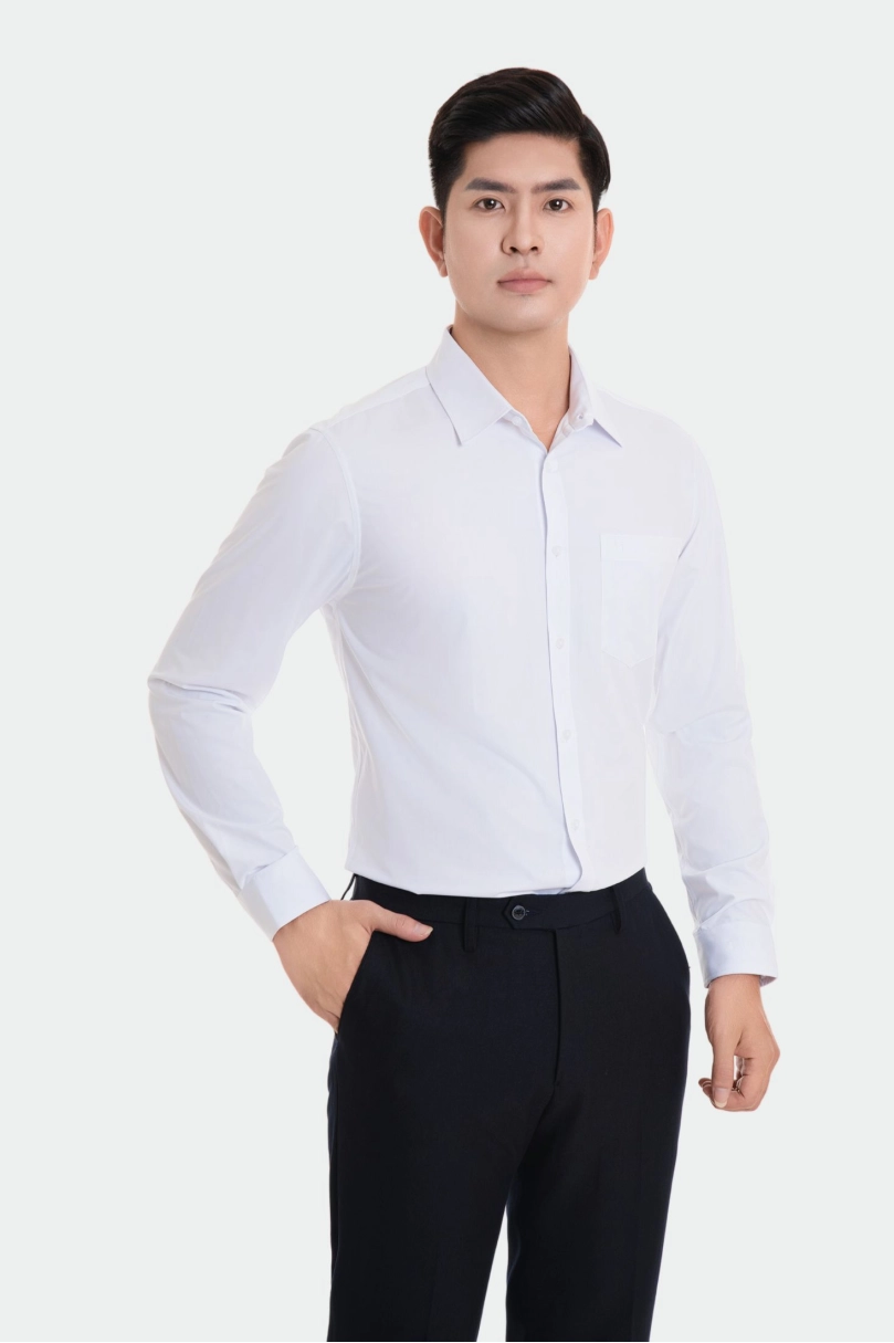 - Tông màu trắng thanh lịch: Dễ dàng phối đồ với quần tây, kaki hoặc jeans.