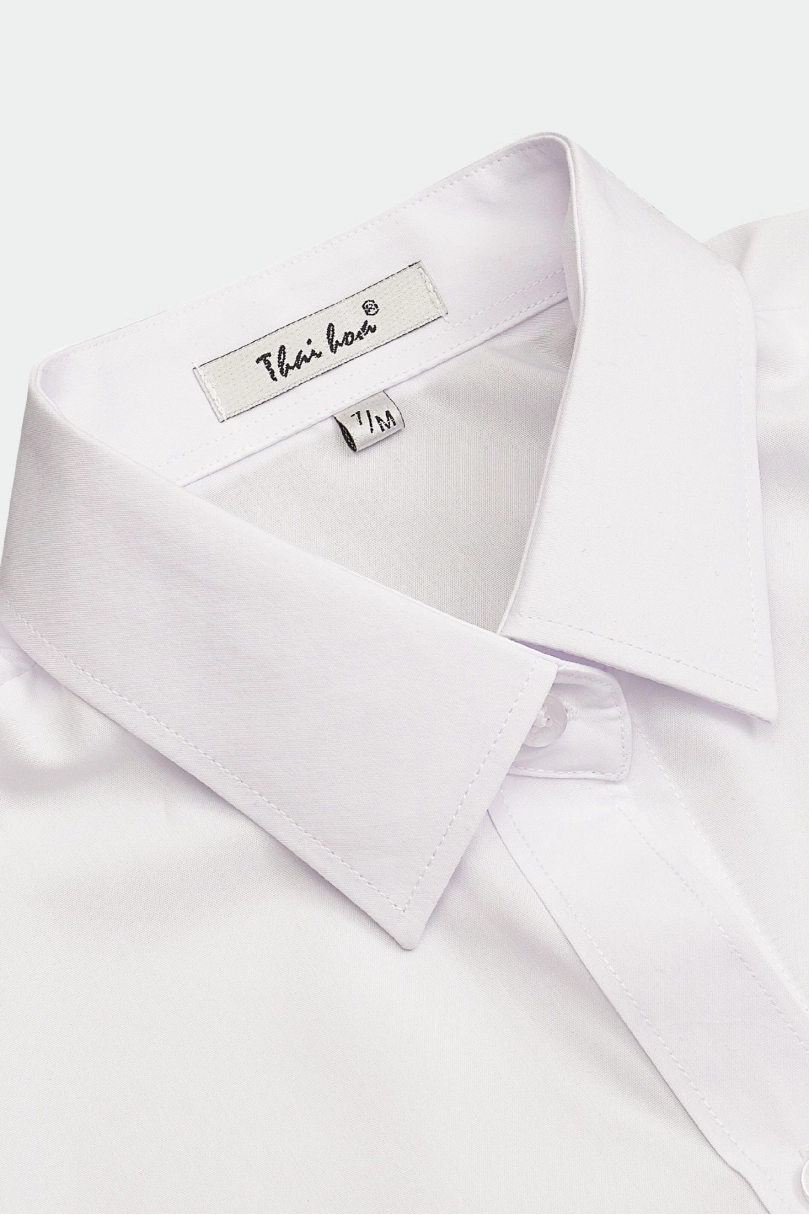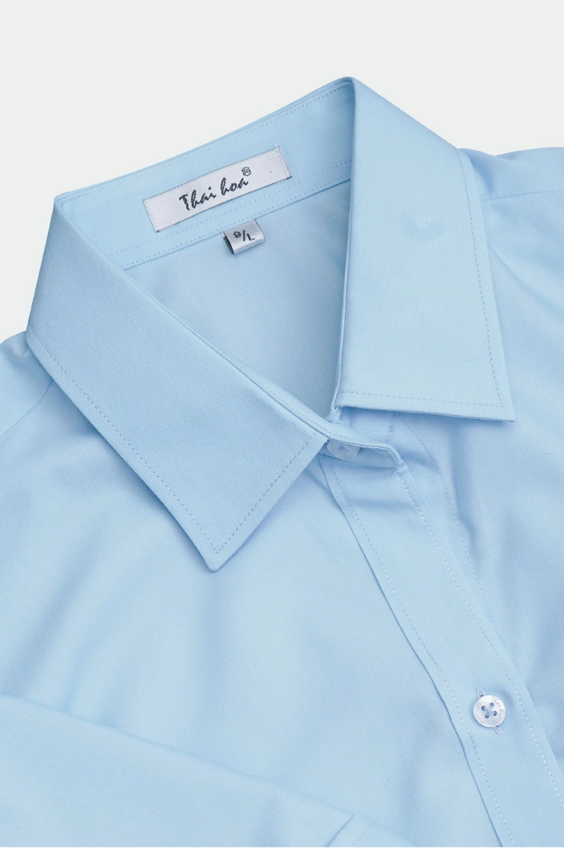 Áo sơ mi nữ ngắn tay Thái Hòa 25ASW-267 vải Bamboo Cotton cao cấp bản nẹp khuy có chiết eo cao cấp