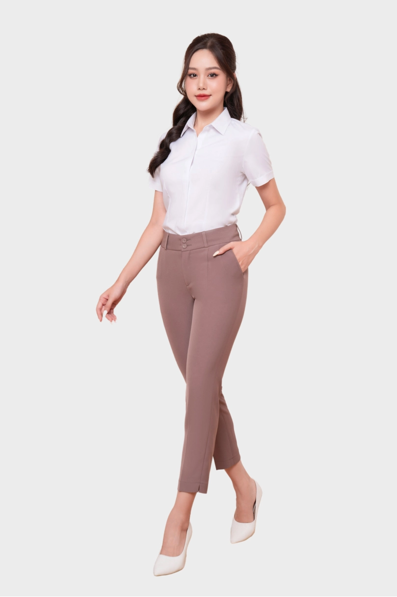 Quần ống suông nữ 25QAW-274 chất liệu vỏ hàu cạp cao 5 phân 2 cúc bản cạp trên rốn Thái Hòa
