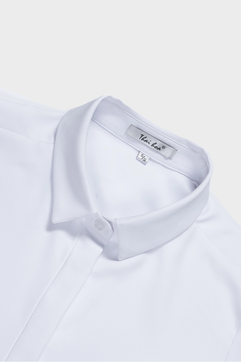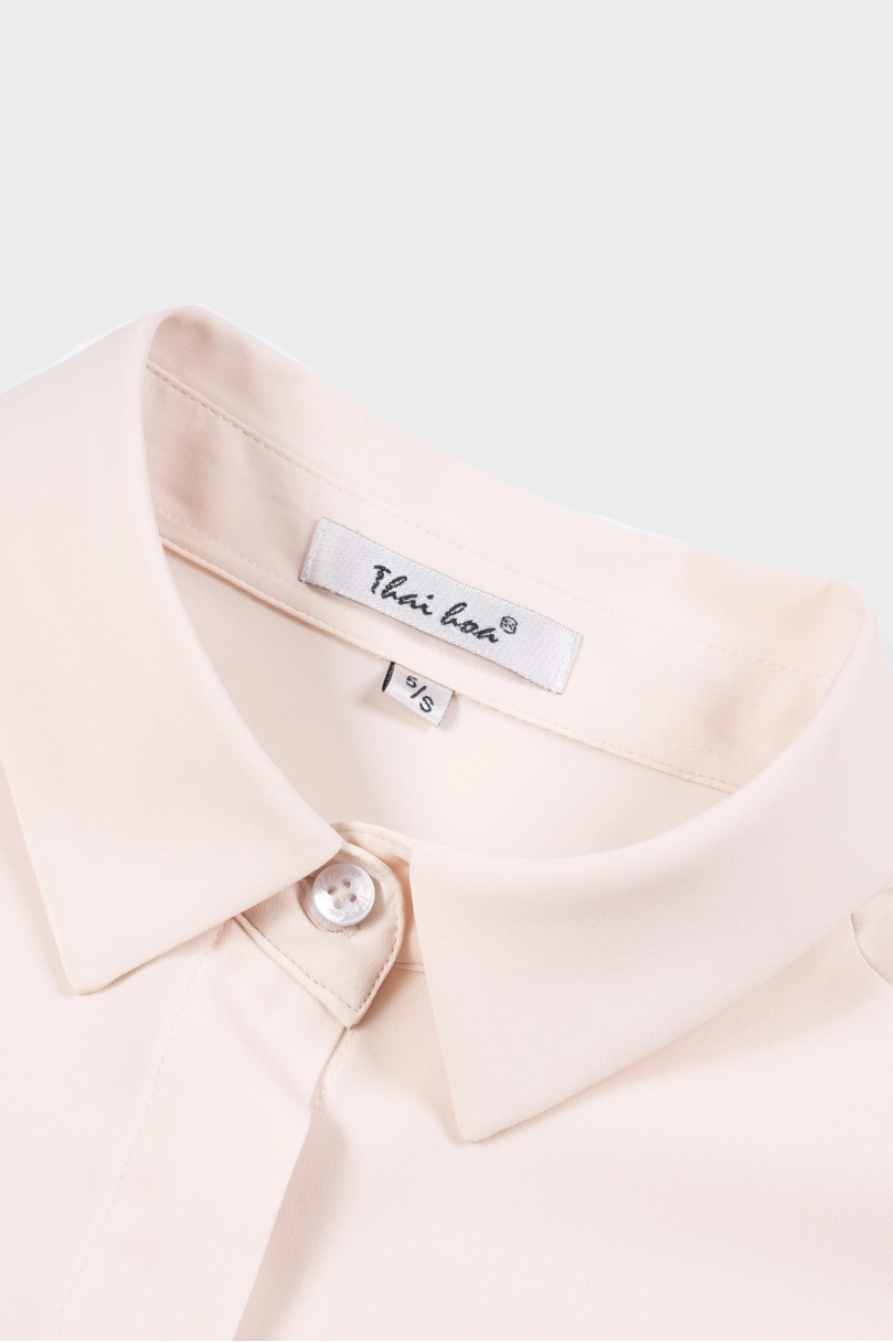 Áo sơ mi nữ ngắn tay Thái Hòa 25ASW-267 vải Bamboo Cotton cao cấp bản nẹp khuy có chiết eo cao cấp