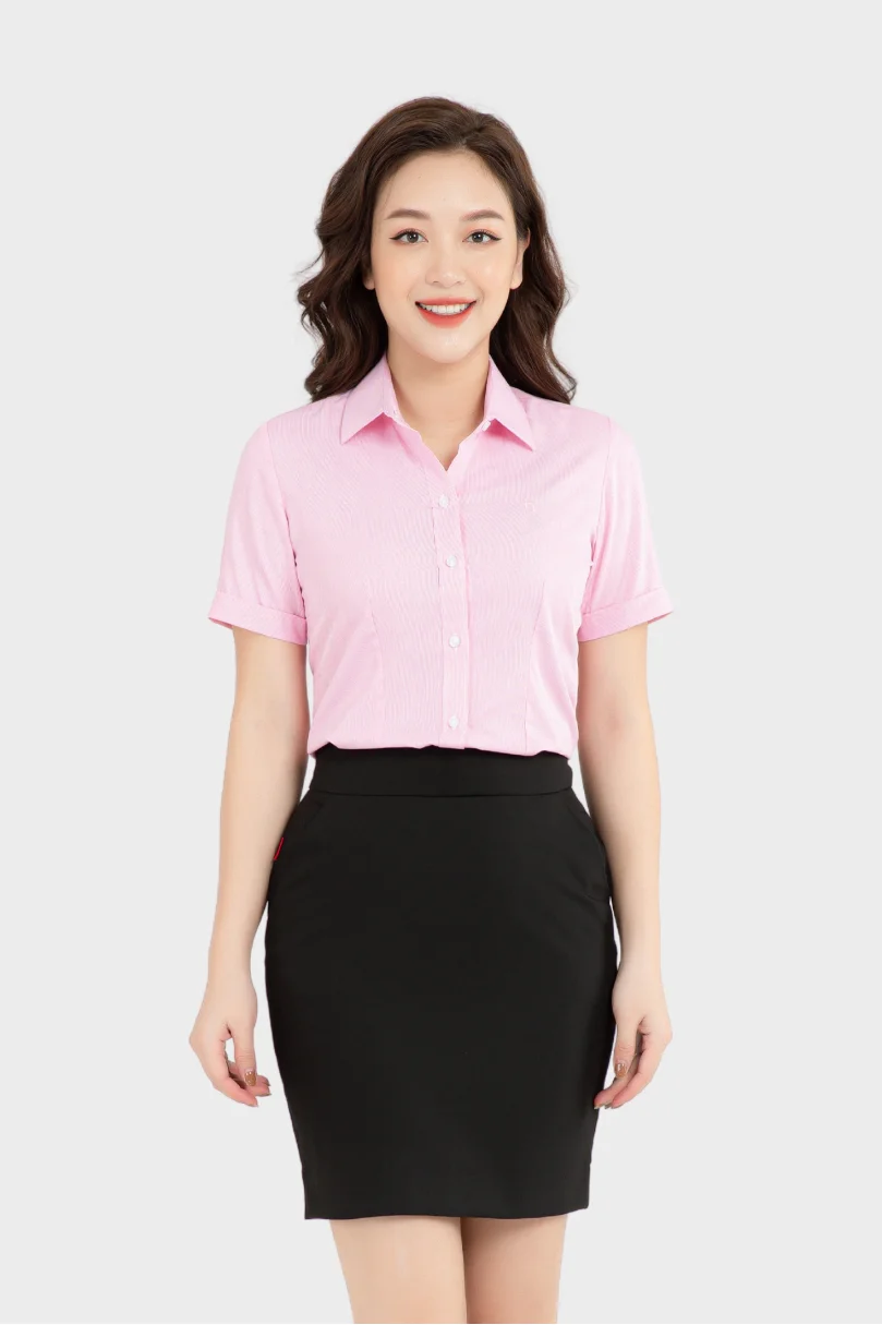 - Áo sơ mi nữ công sở ngắn tay Thái Hòa kẻ sọc nhiều màu Cotton ASW0301-R04