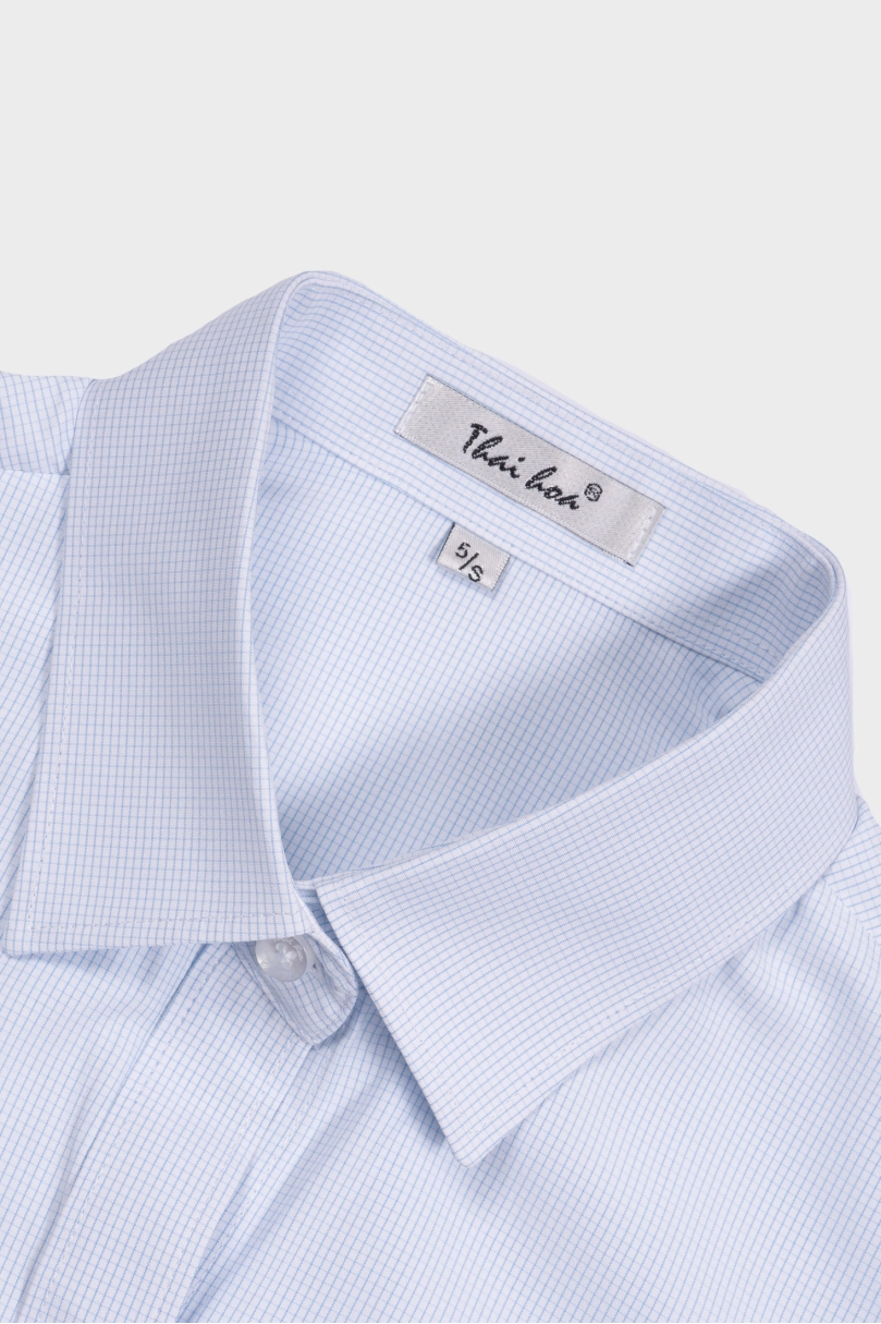 Áo sơ mi nữ ngắn tay Thái Hòa 25ASW-267 vải Bamboo Cotton cao cấp bản nẹp khuy có chiết eo cao cấp
