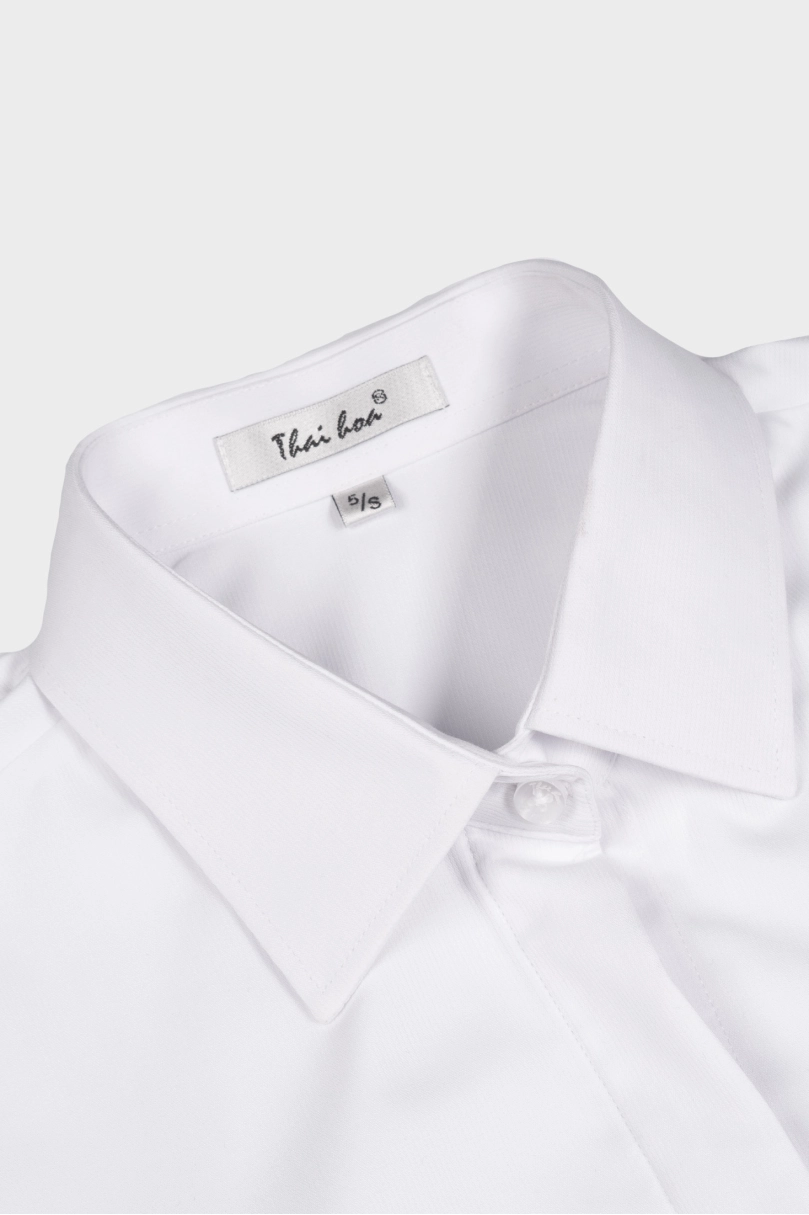 Áo sơ mi nữ ngắn tay Thái Hòa 25ASW-267 vải Bamboo Cotton cao cấp bản nẹp khuy có chiết eo cao cấp