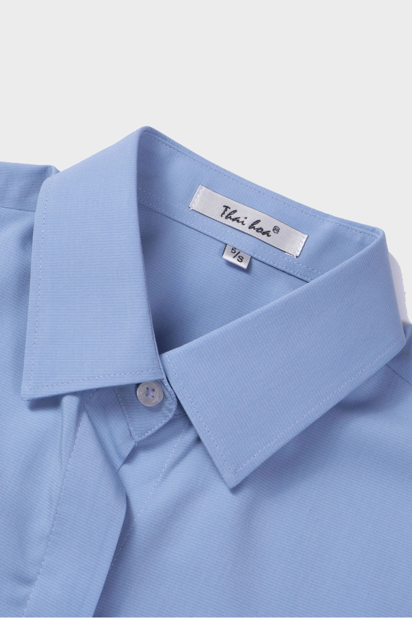 Áo sơ mi nữ ngắn tay Thái Hòa 25ASW-267 vải Bamboo Cotton cao cấp bản nẹp khuy có chiết eo cao cấp