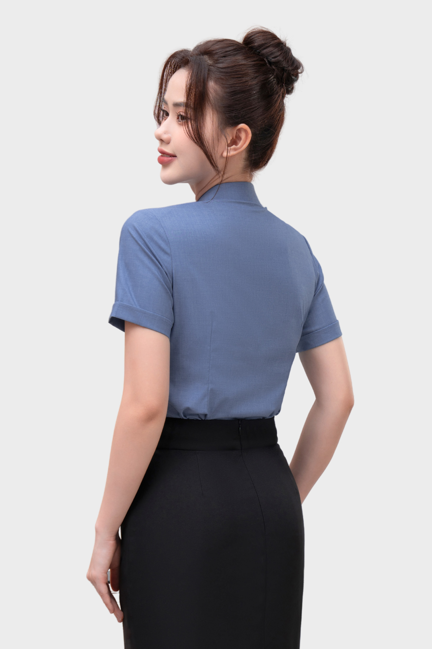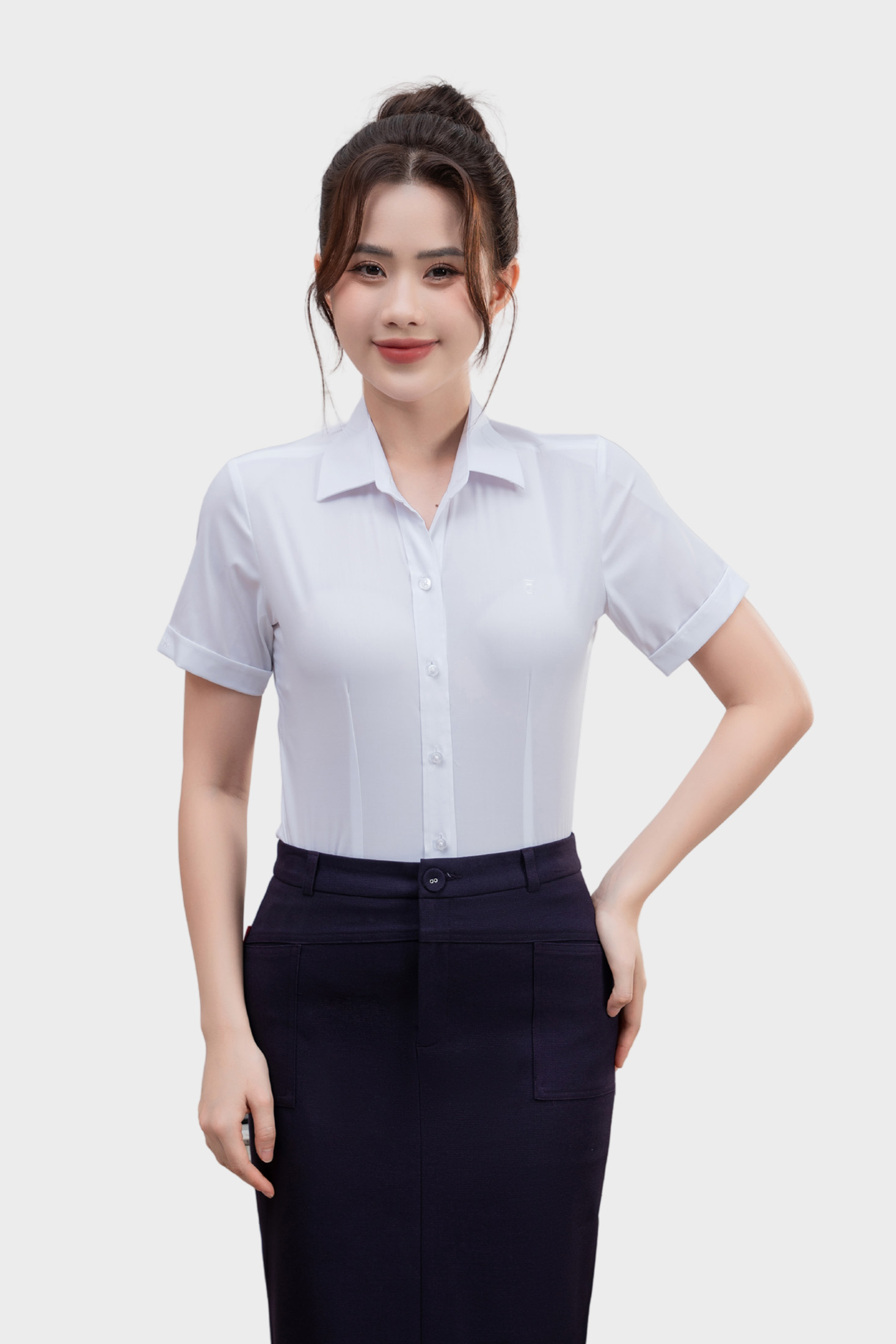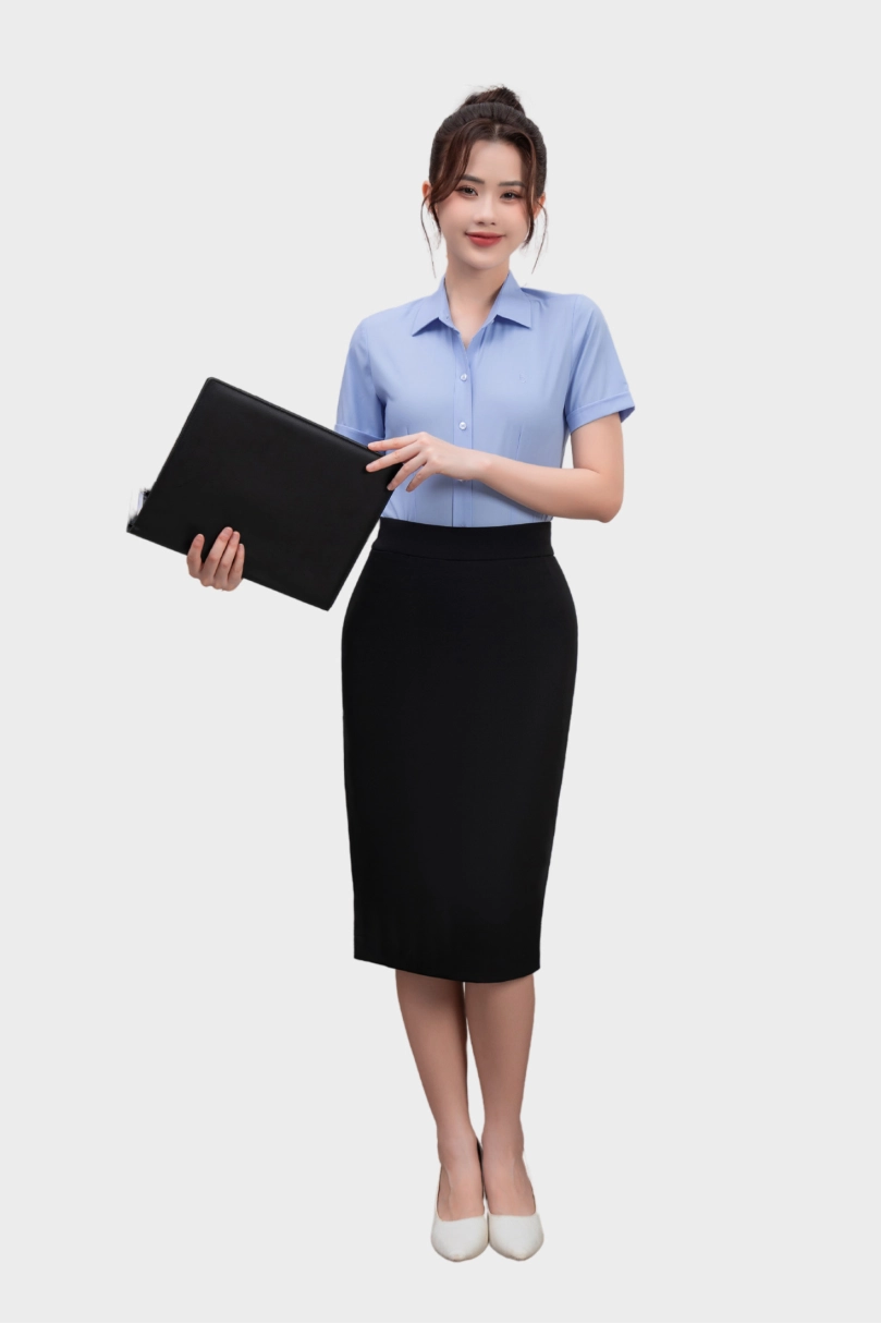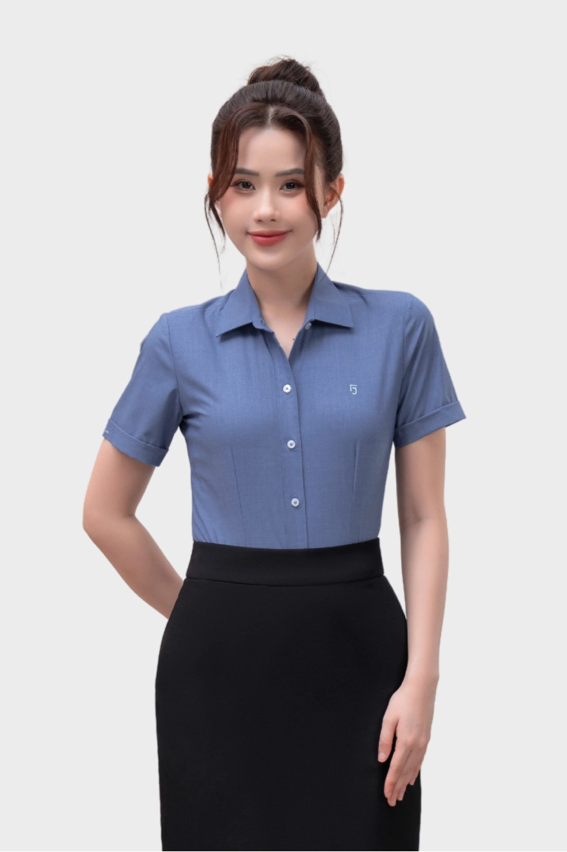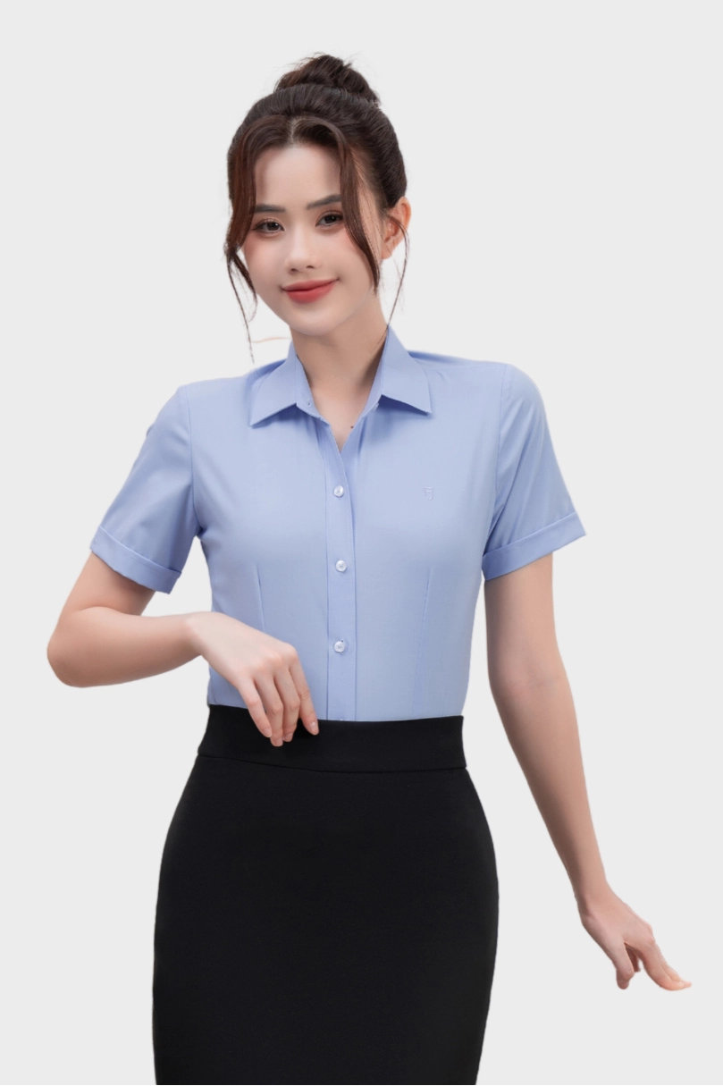- Áo sơ mi nữ ngắn tay Thái Hòa 25ASW-267 vải Bamboo Cotton cao cấp bản nẹp khuy có chiết eo cao cấp