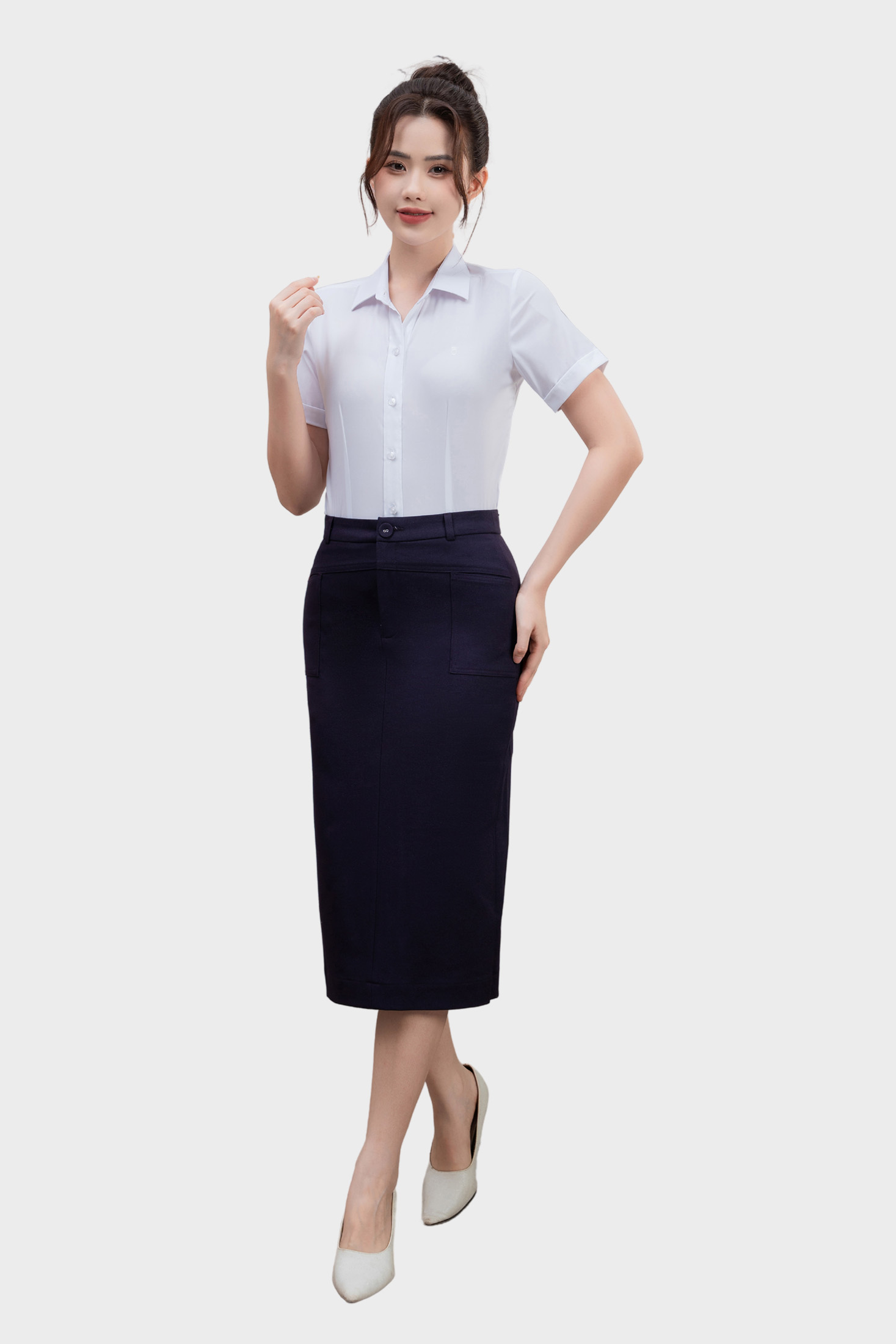 Chân váy nữ Thái Hòa 25CVW-271 dáng bút chì cạp cao 2 lớp form dài qua gối cạp 1 khuy