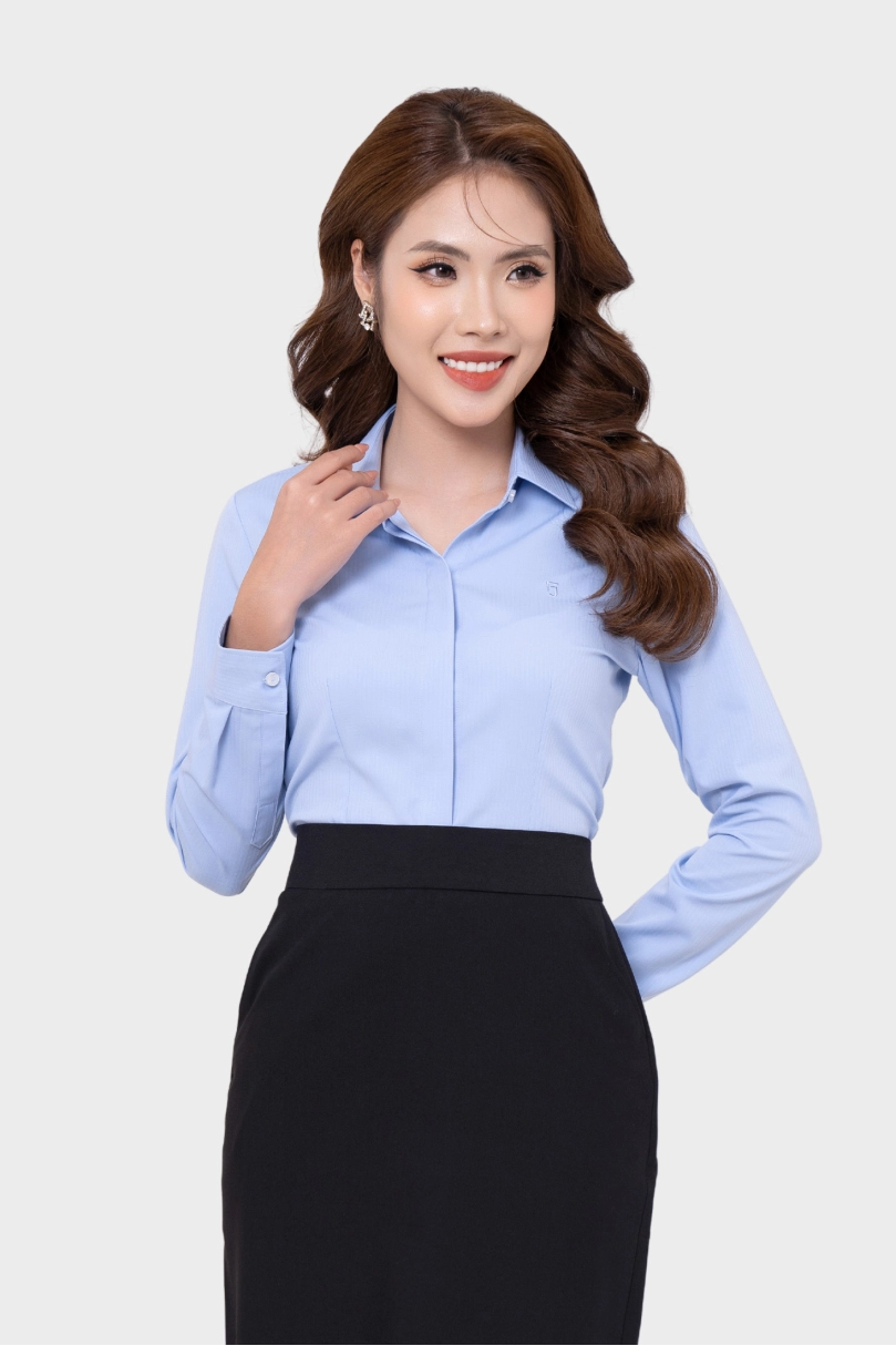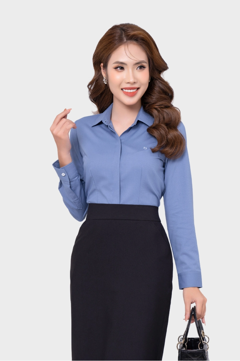 Áo sơ mi nữ Thái Hòa 25ASW-266 chất liệu cotton vải gân sọc chìm không nẹp cao cấp nhiều màu