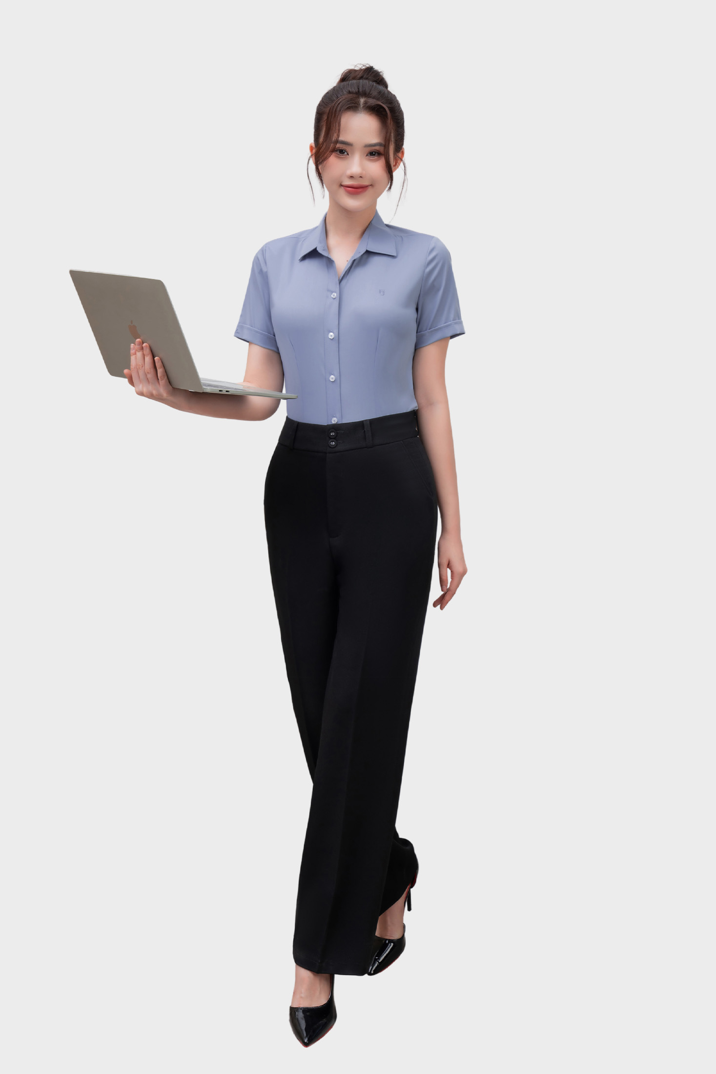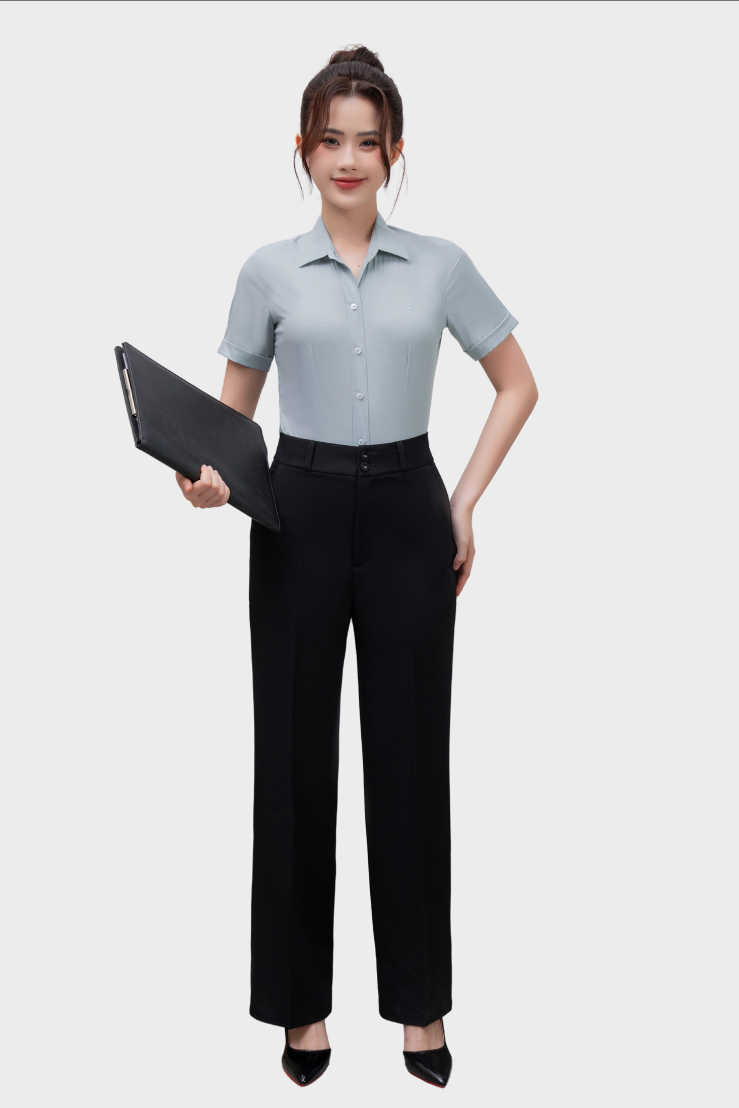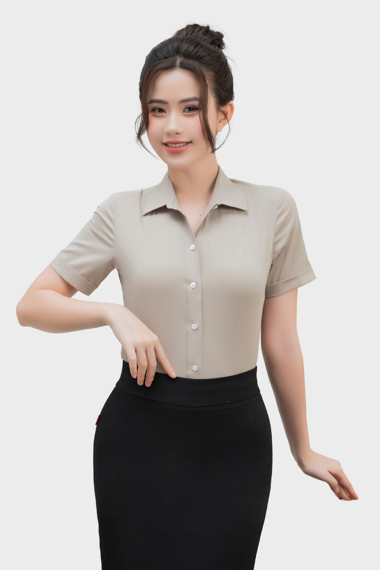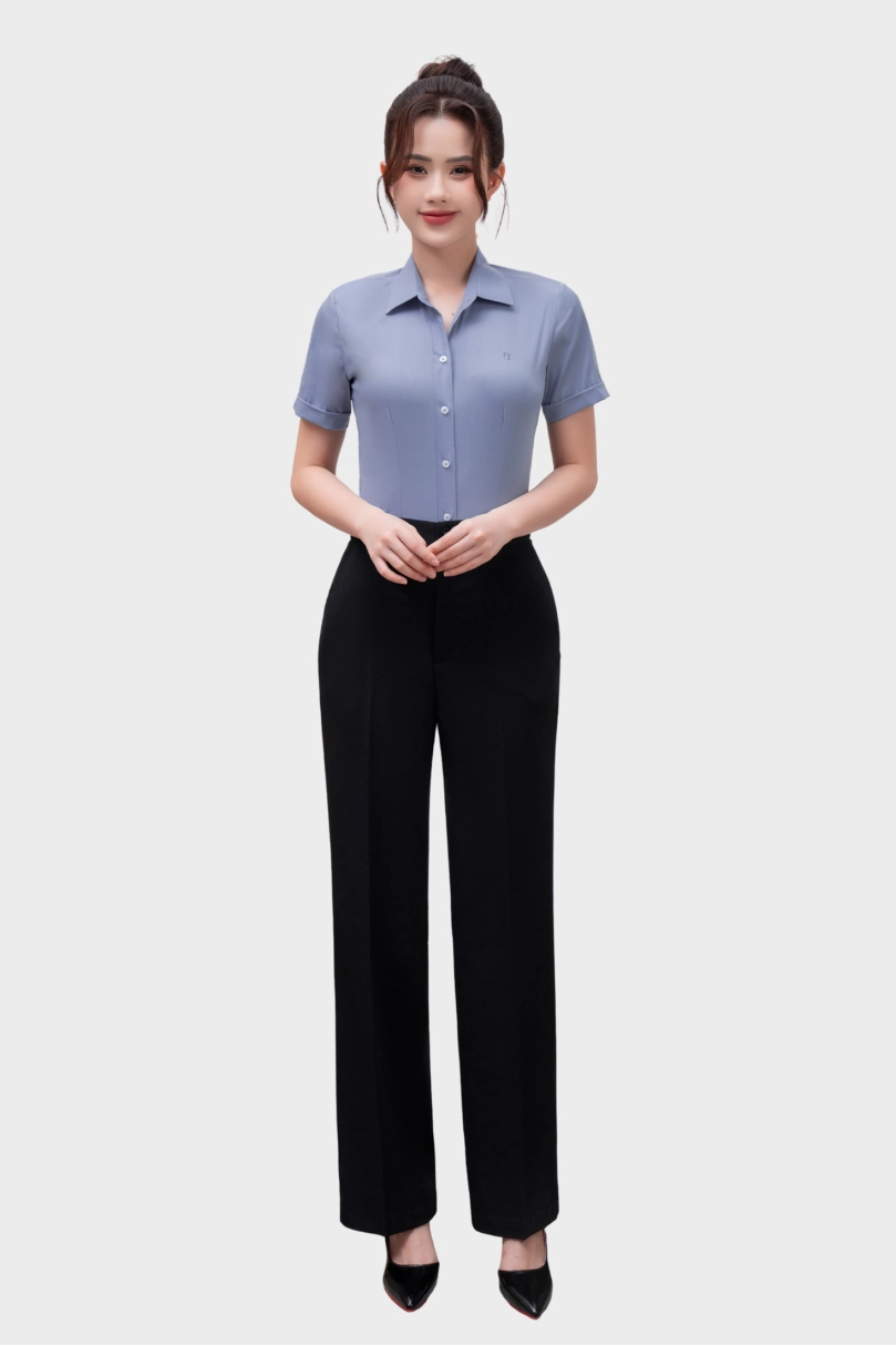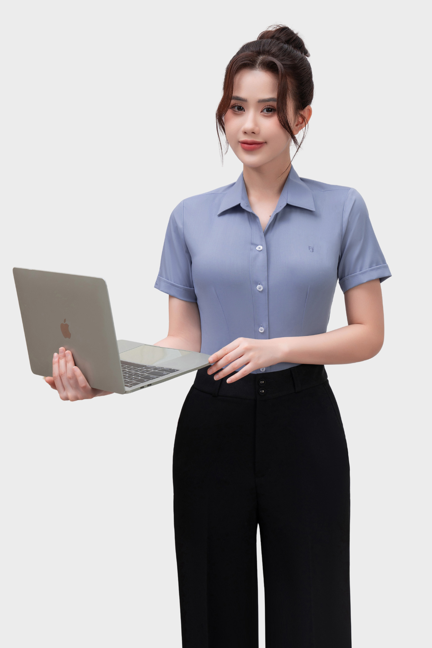 Áo sơ mi nữ ngắn tay Thái Hòa 25ASW-267 vải Bamboo Cotton cao cấp bản nẹp khuy có chiết eo cao cấp