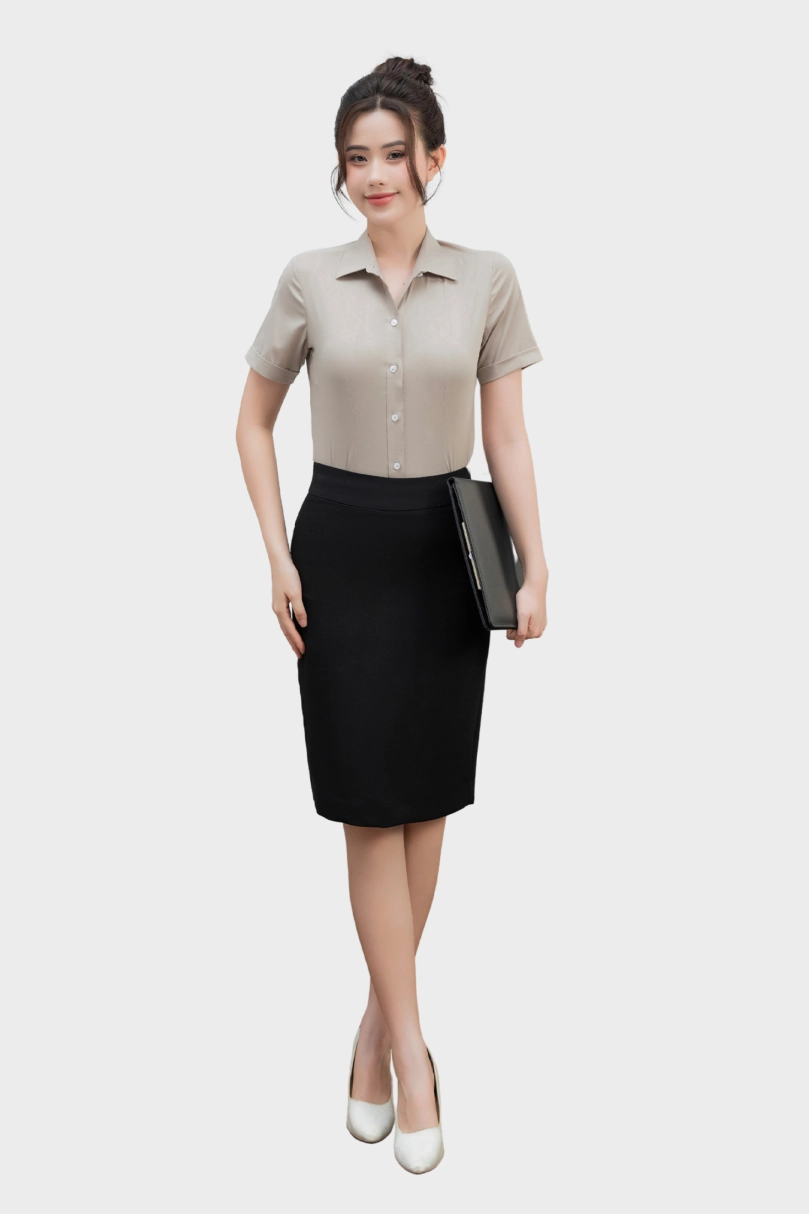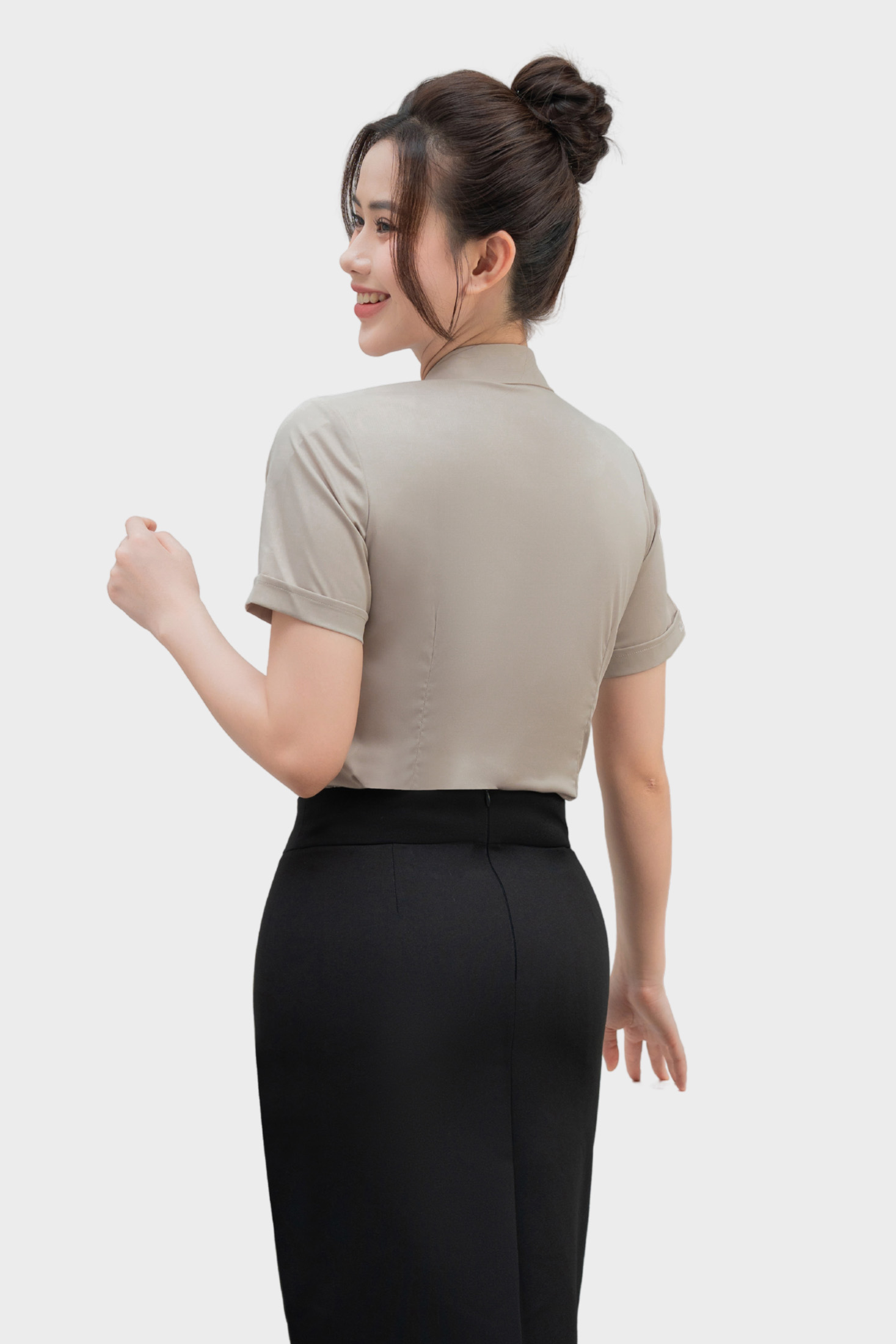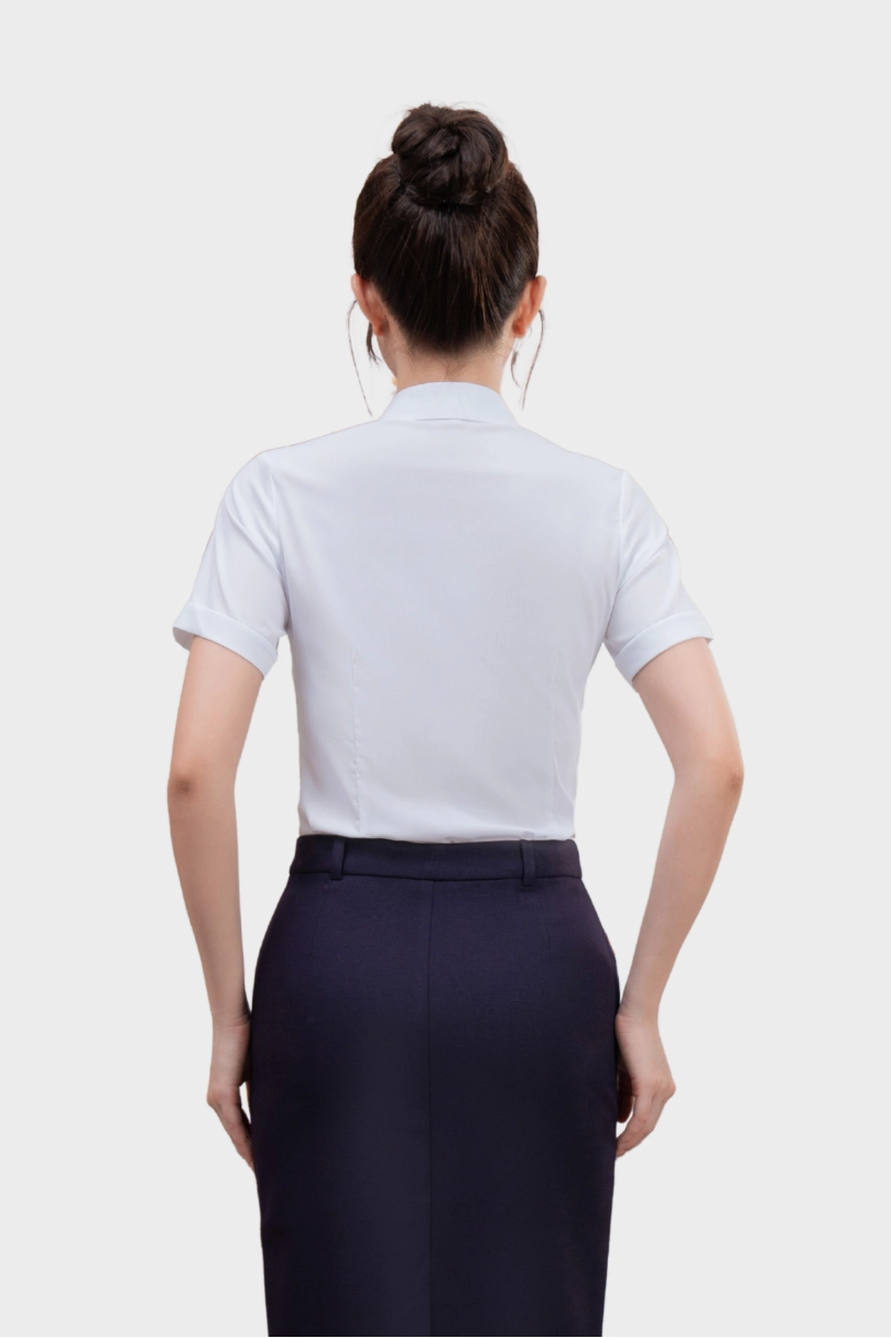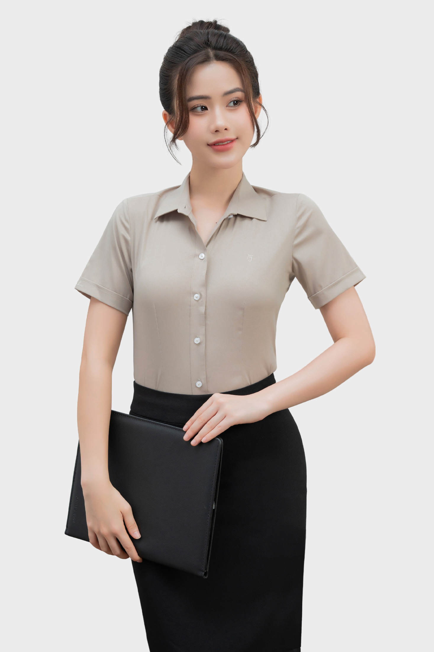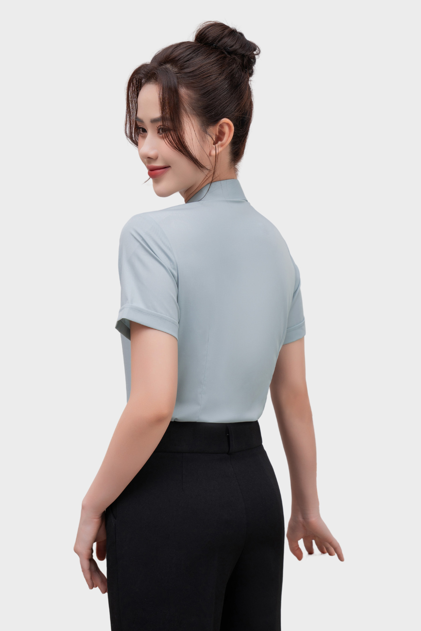 Áo sơ mi nữ ngắn tay Thái Hòa 25ASW-267 vải Bamboo Cotton cao cấp bản nẹp khuy có chiết eo cao cấp