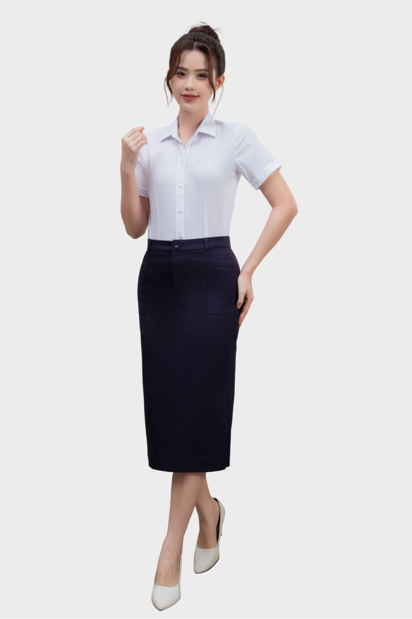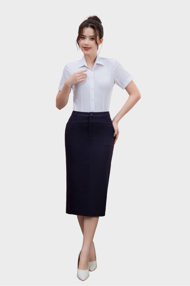 Chân váy nữ Thái Hòa 25CVW-271 dáng bút chì cạp cao 2 lớp form dài qua gối cạp 1 khuy
