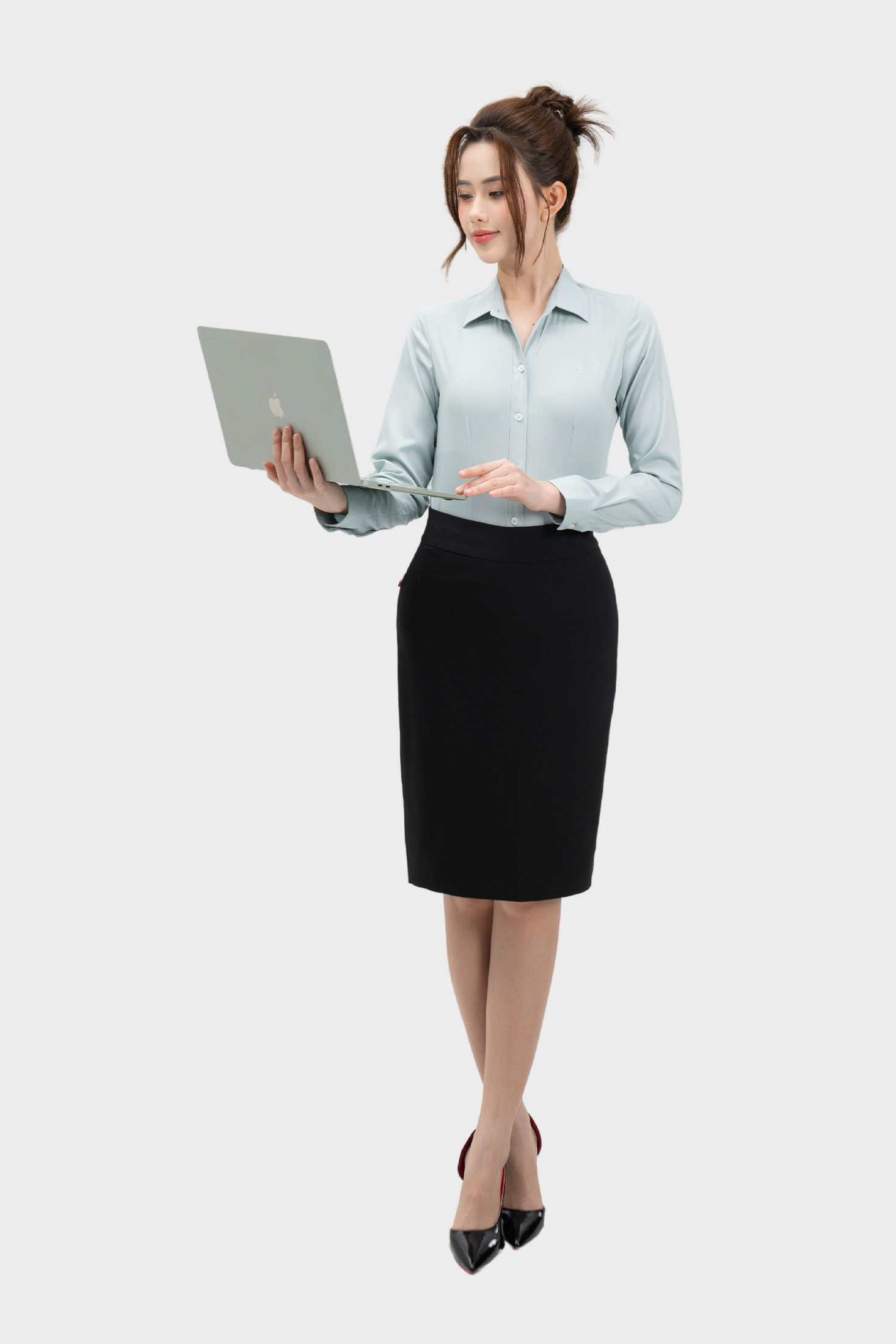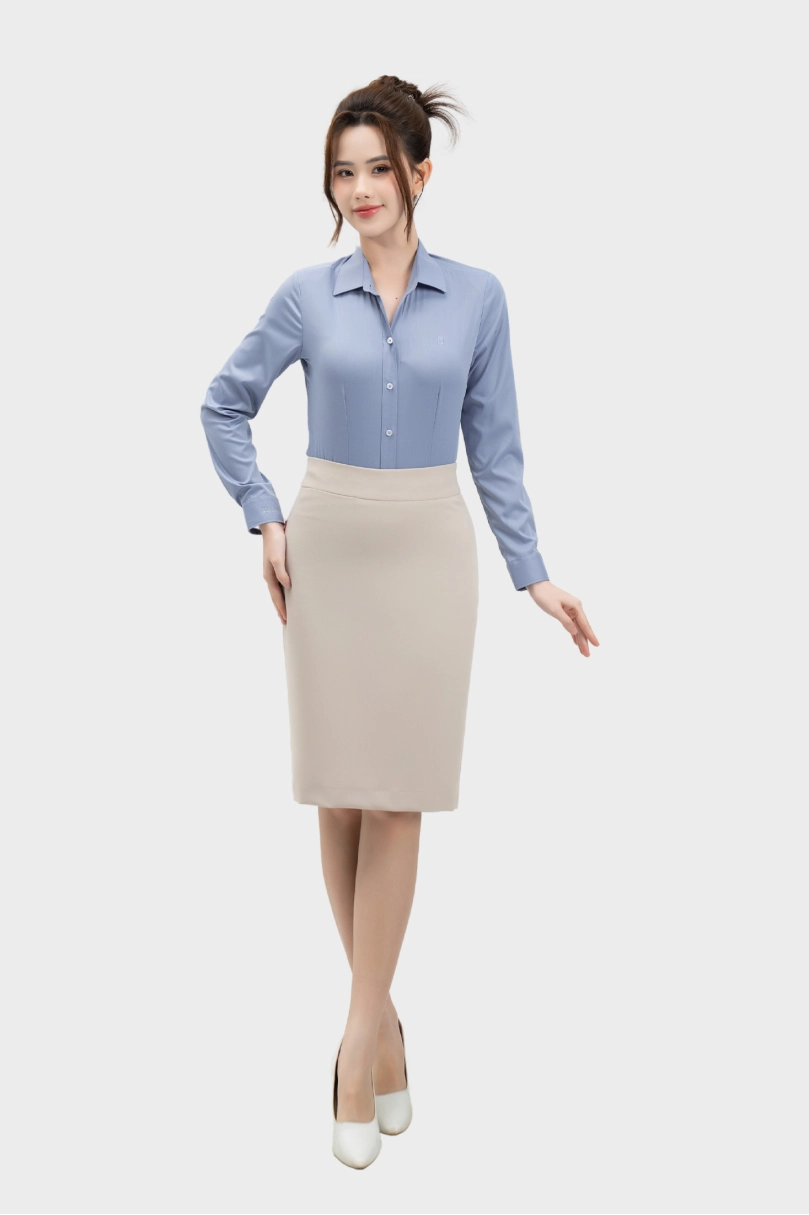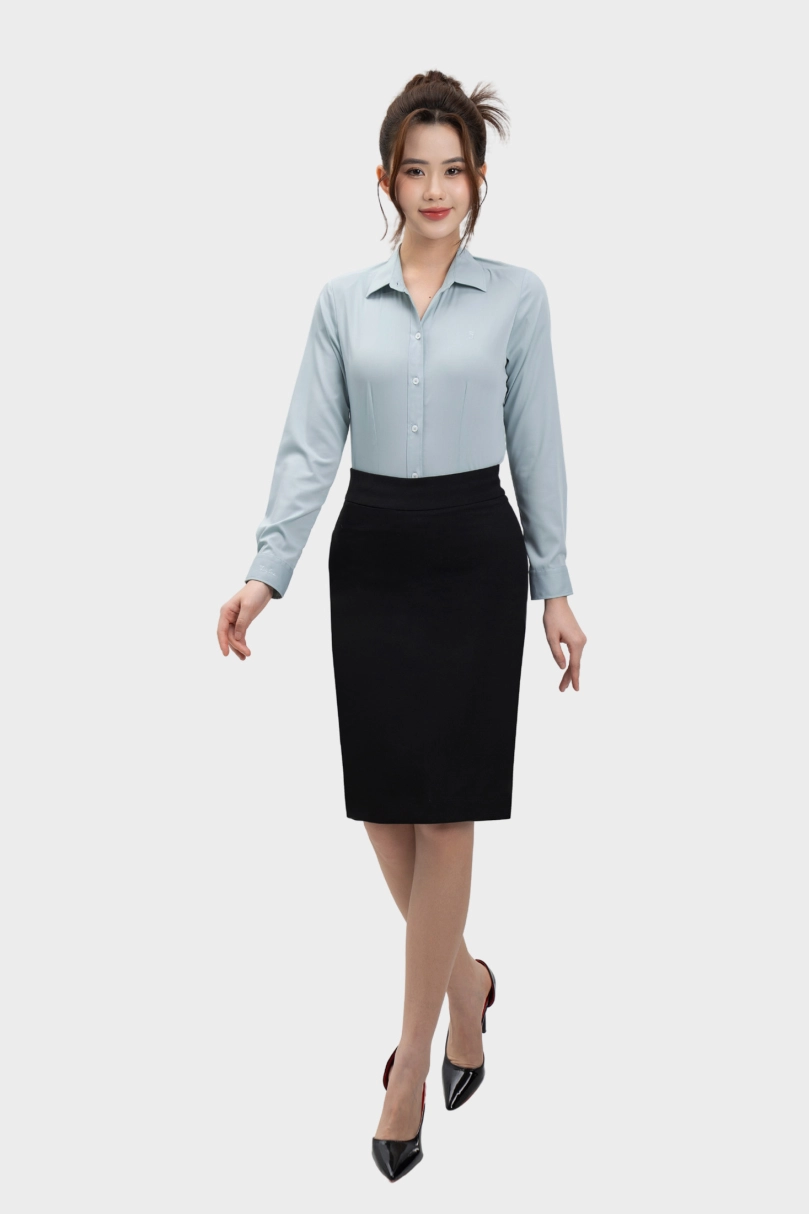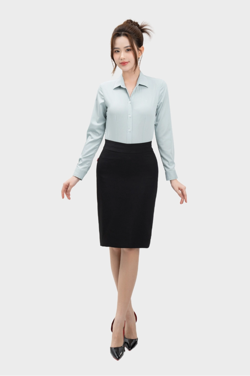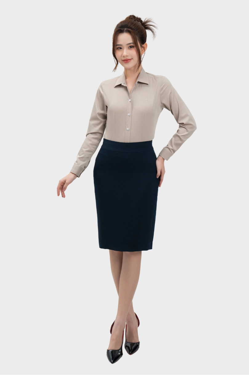 Chân váy nữ Thái Hòa 25CVW-271 dáng bút chì cạp cao 2 lớp form dài qua gối cạp 1 khuy