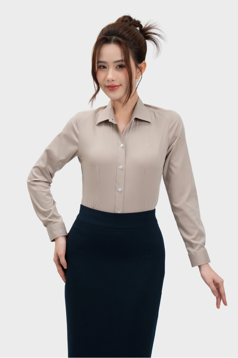 Áo Sơ Mi Dài Tay Nữ 24ASW-249 Kẻ Ô Chất Liệu Bột Gỗ Gracell Cao Cấp Form Ôm Thái Hòa