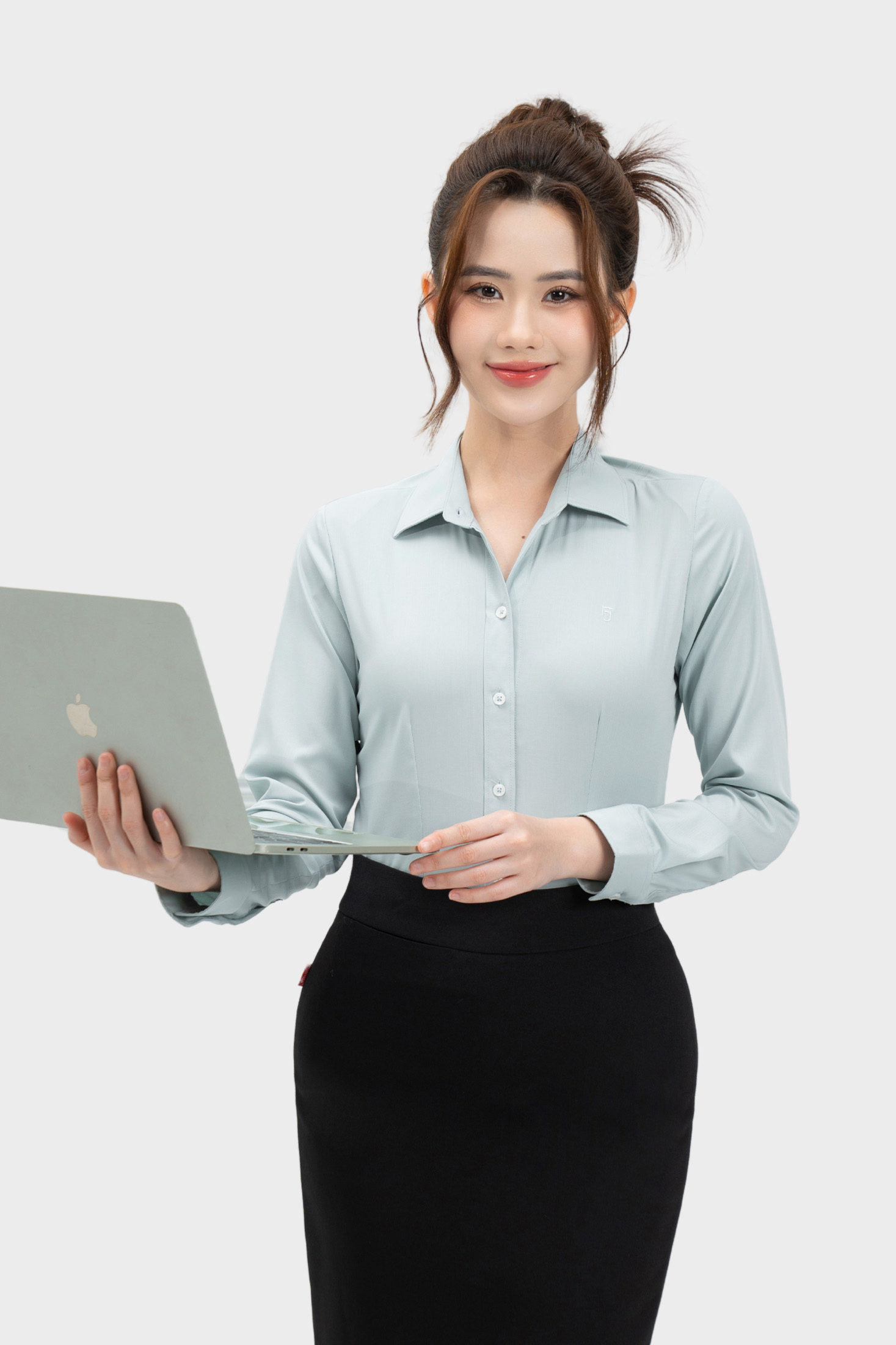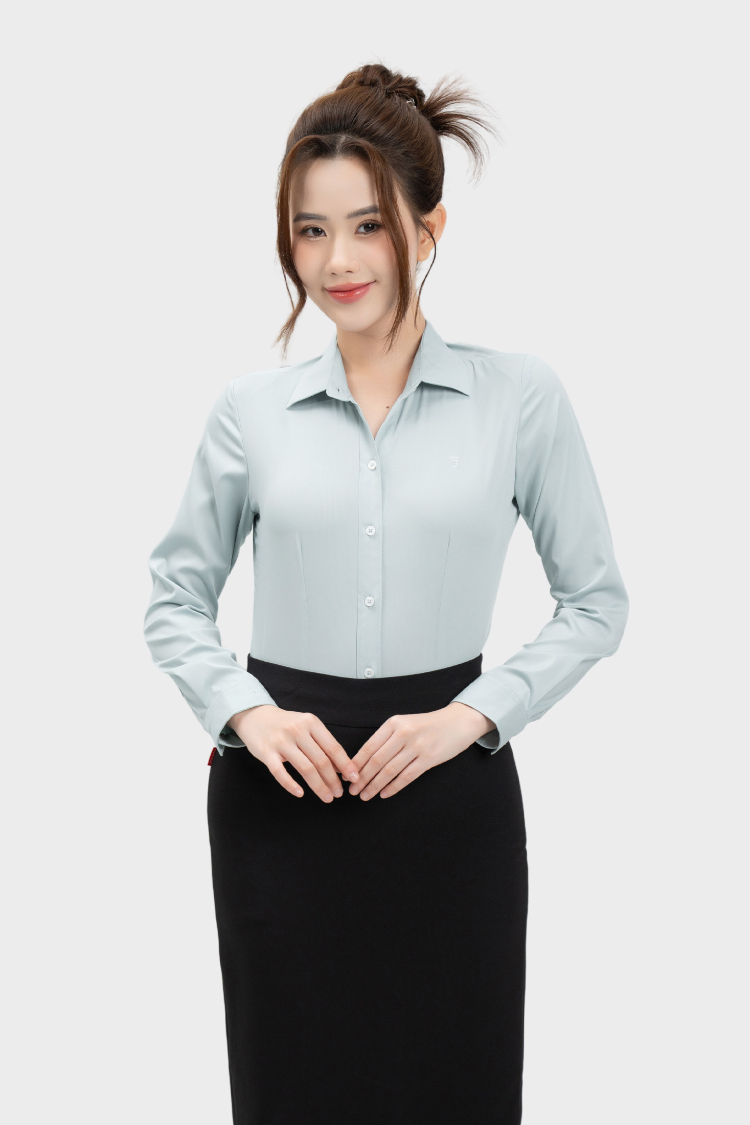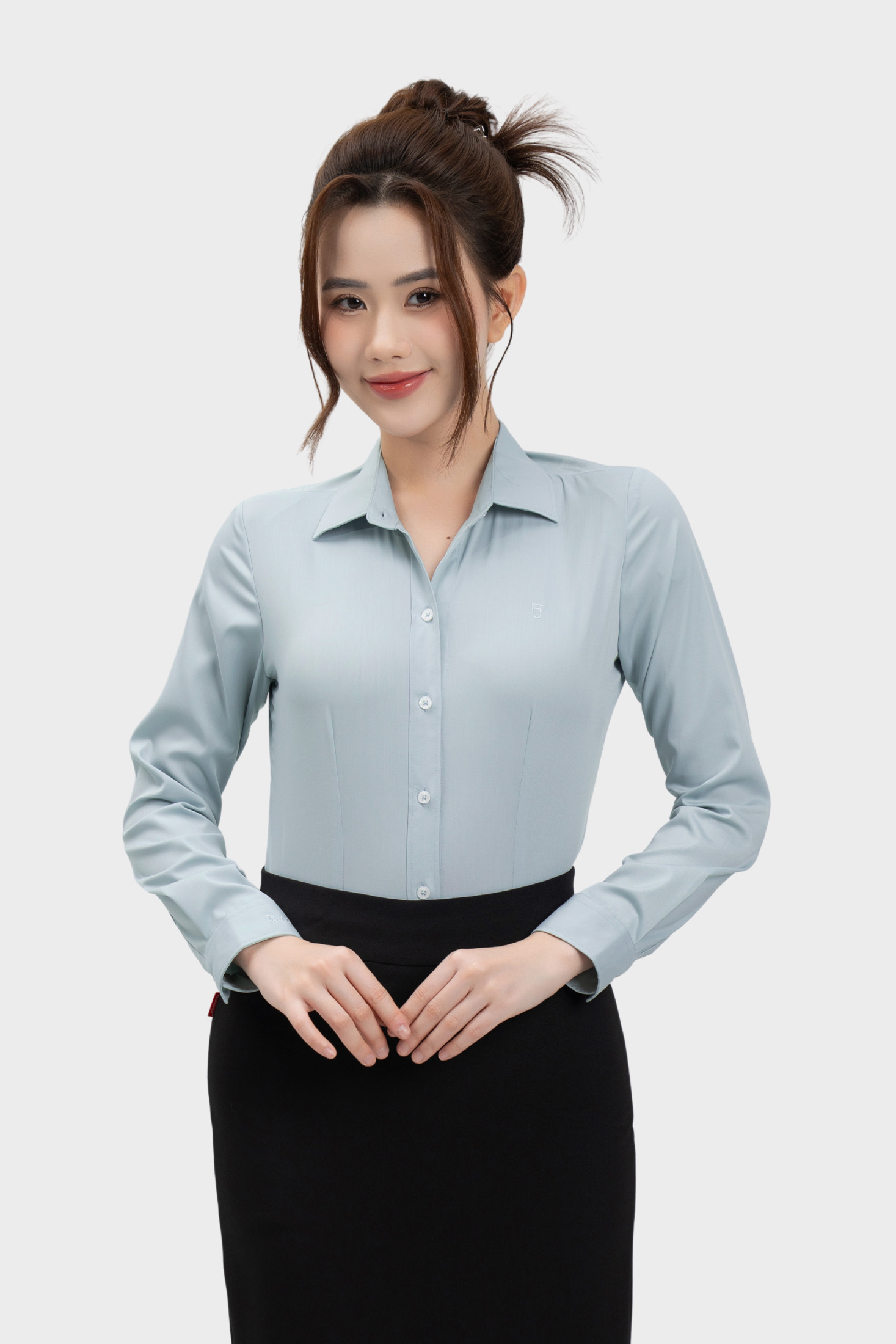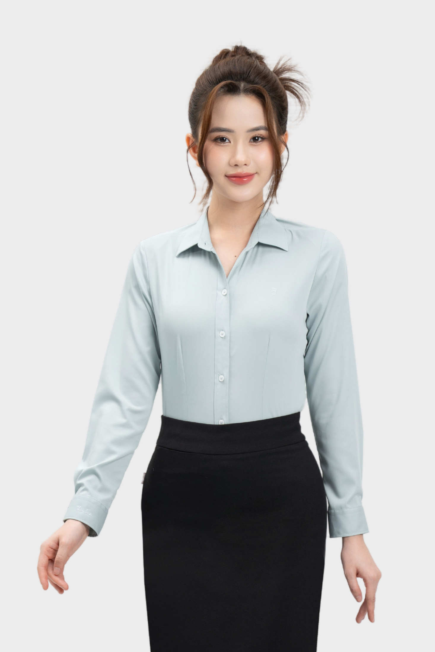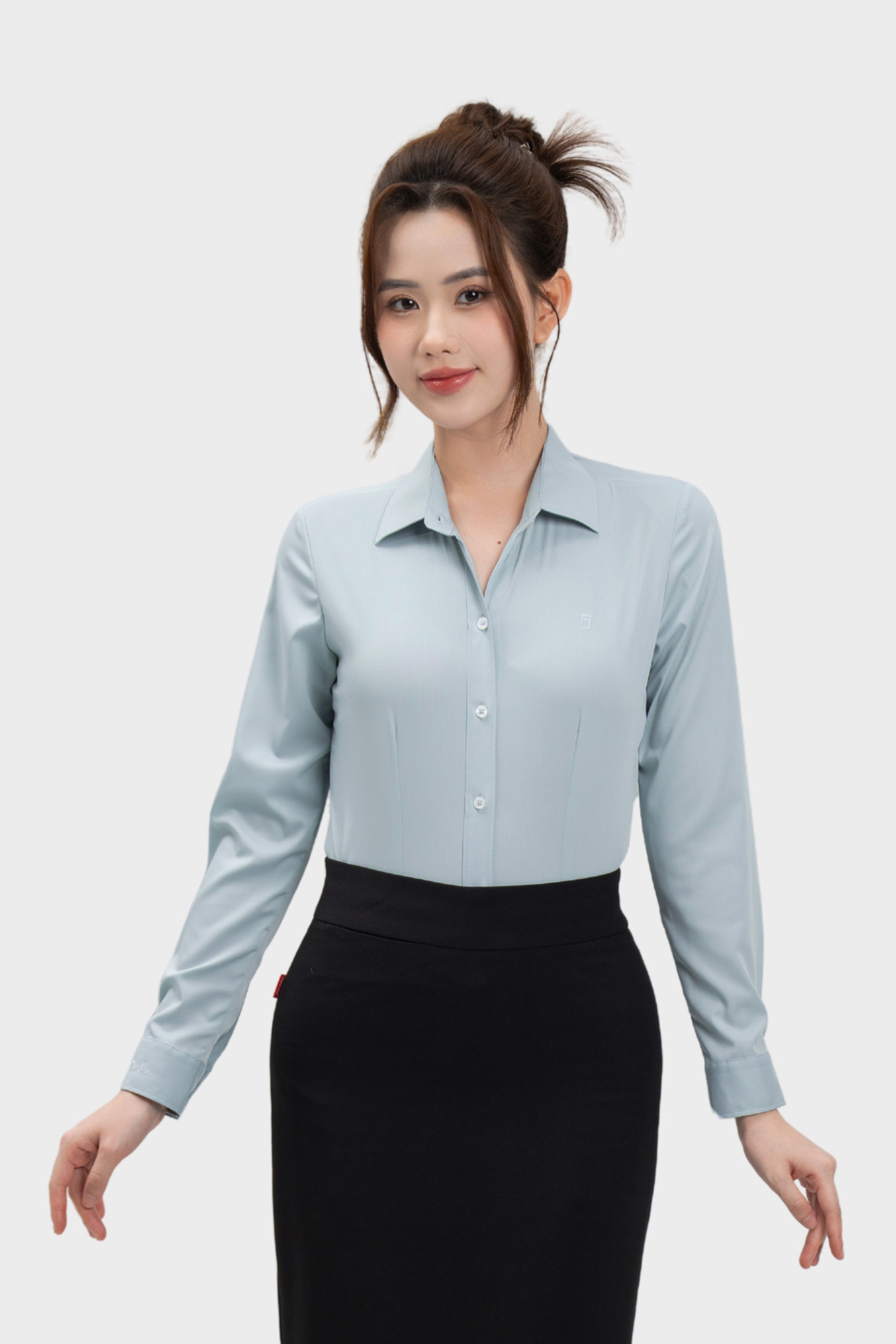 Áo sơ mi nữ ngắn tay Thái Hòa 25ASW-267 vải Bamboo Cotton cao cấp bản nẹp khuy có chiết eo cao cấp