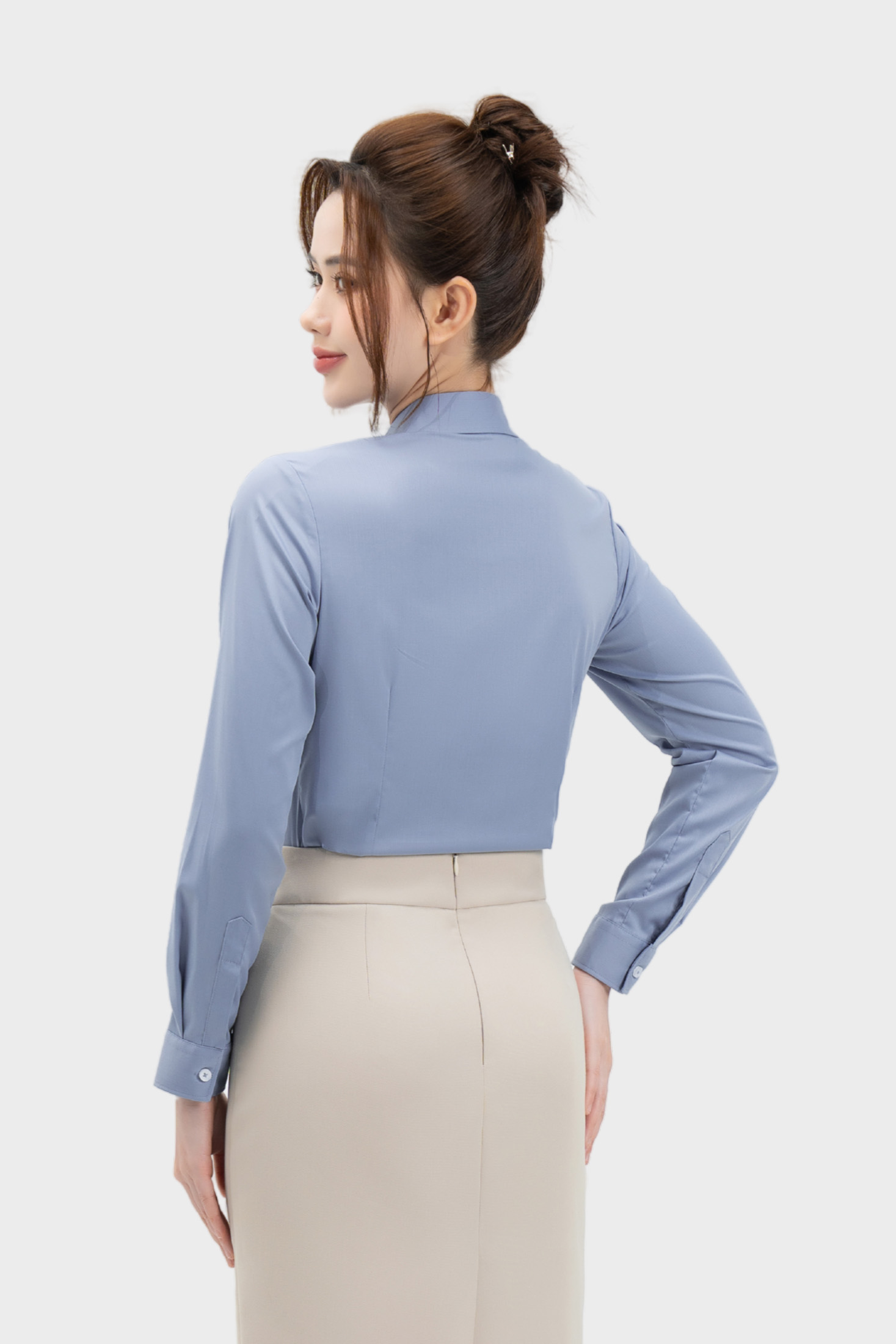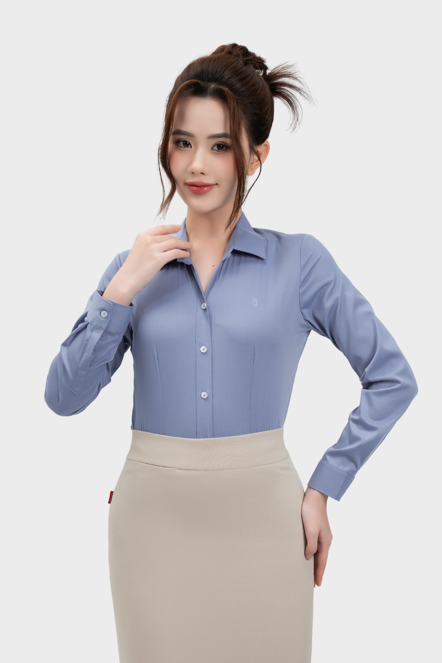 Áo sơ mi nữ Thái Hòa 25ASW-265 vải họa tiết ziczac dệt chìm cao cấp form slimfit có chiết ly eo cotton phối vicose