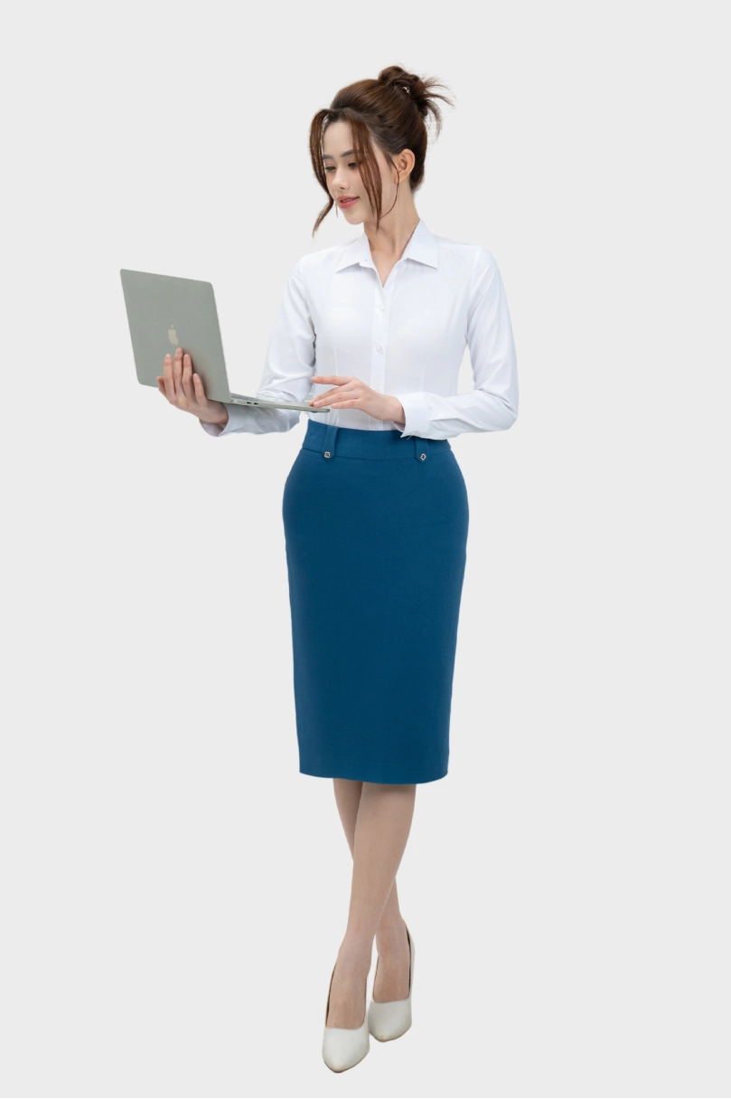 Chân váy nữ Thái Hòa 25CVW-271 dáng bút chì cạp cao 2 lớp form dài qua gối cạp 1 khuy