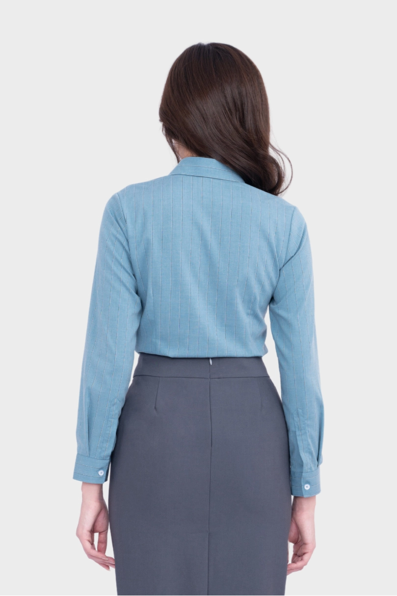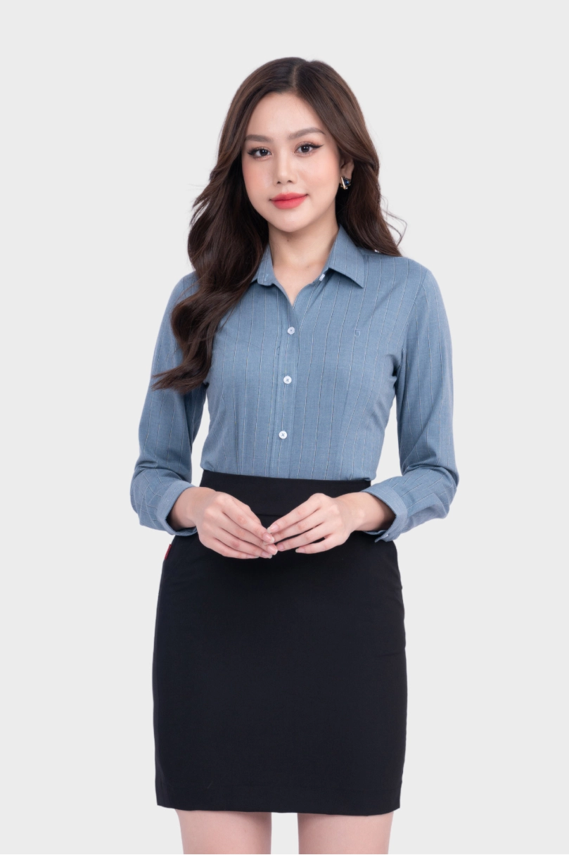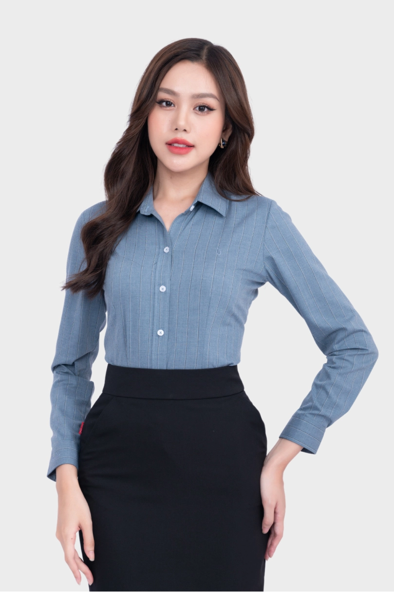 - Áo sơ mi nữ Thái Hòa thiết kế công sở dài tay phủ nano kẻ sọc form đẹp 23ASW-105