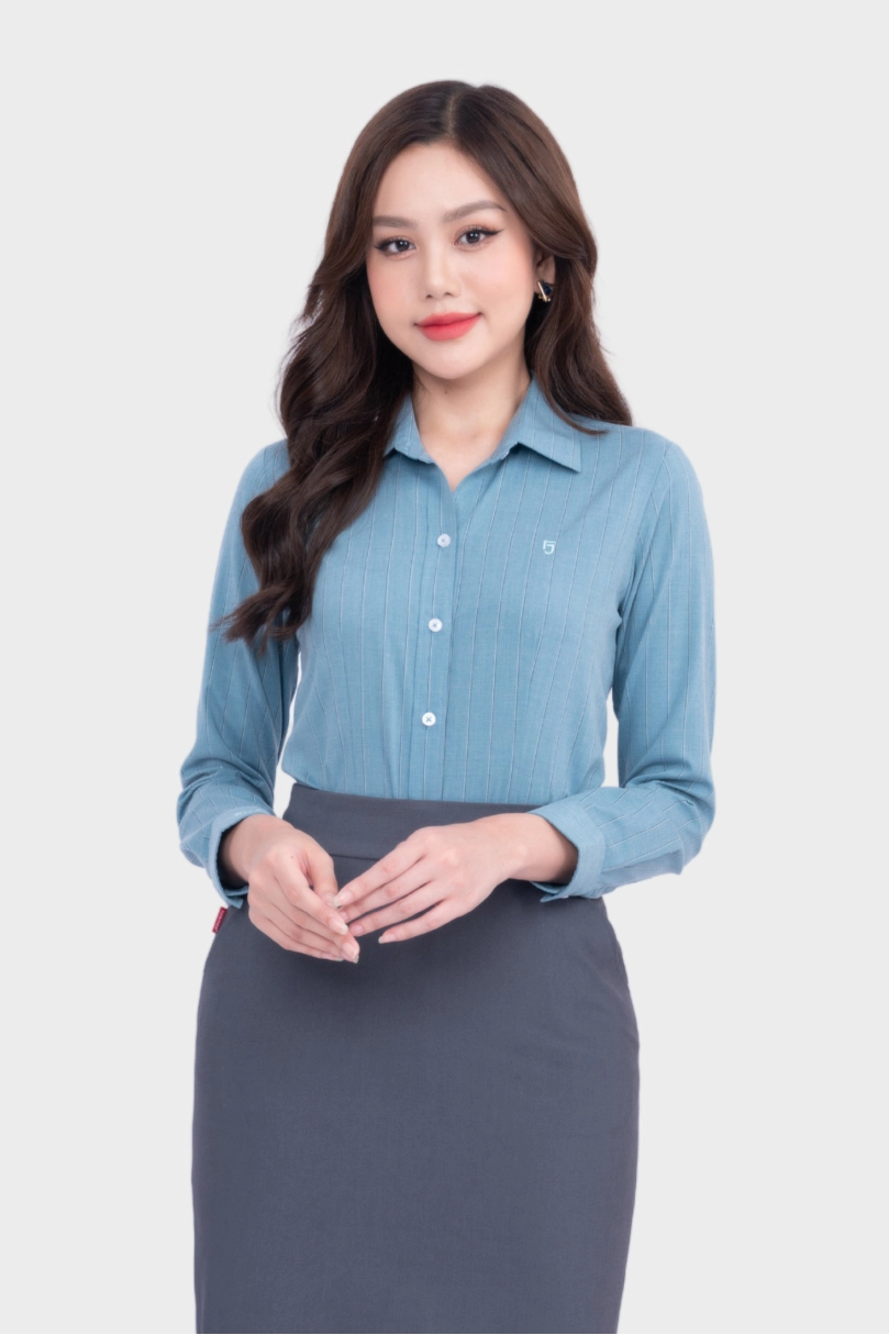 Áo sơ mi nữ Thái Hòa 25ASW-266 chất liệu cotton vải gân sọc chìm không nẹp cao cấp nhiều màu