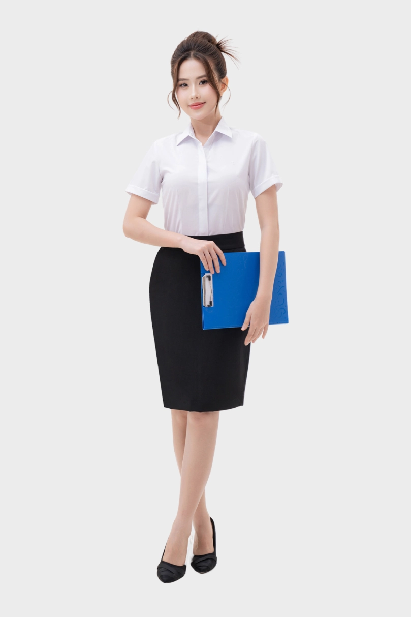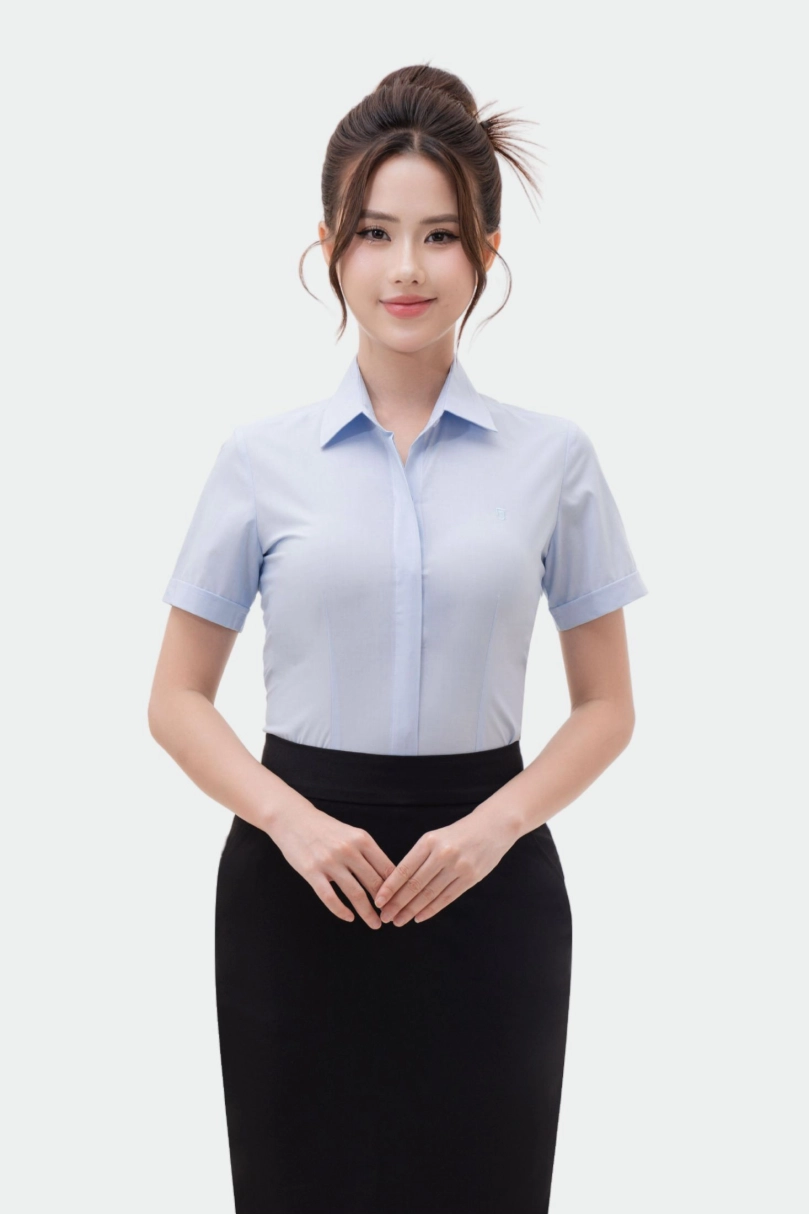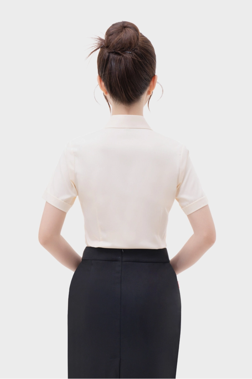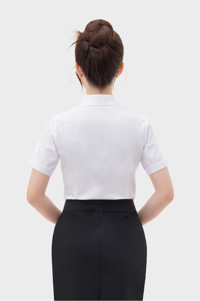 - Áo sơ mi trắng nữ công sở ngắn tay cổ đức vải sợi tre cao cấp 23ASW-218