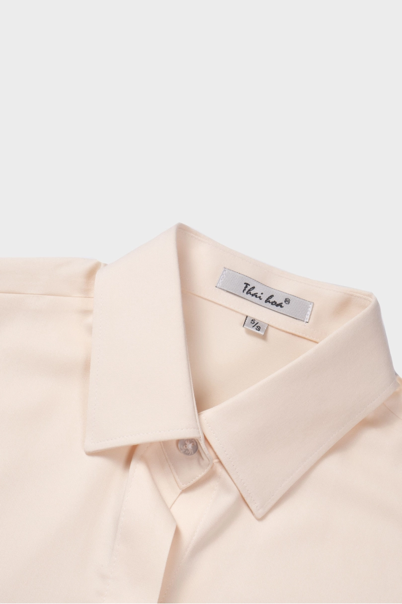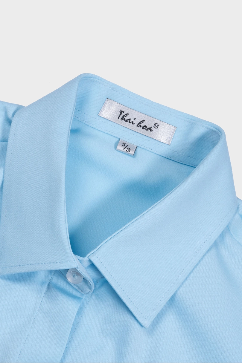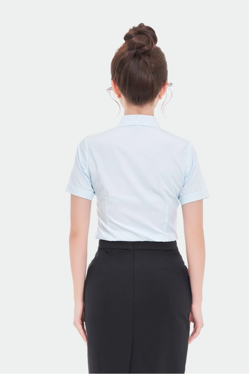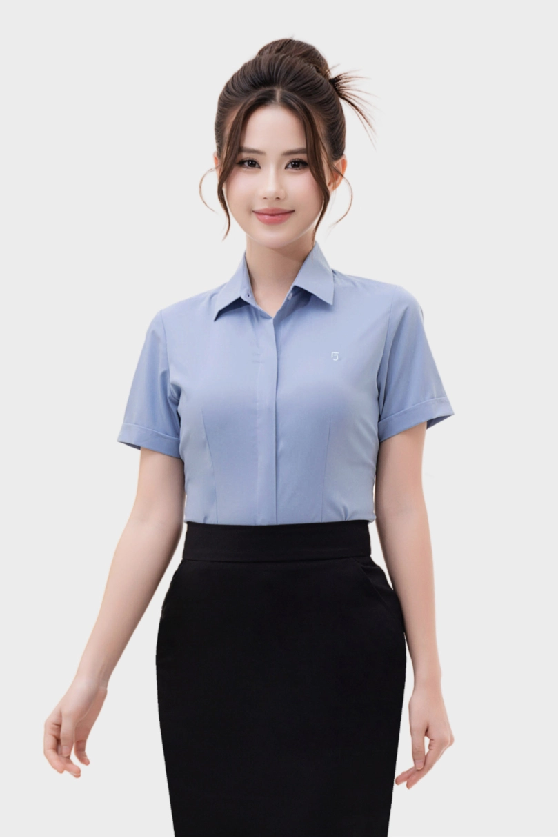 Áo sơ mi nữ ngắn tay Thái Hòa 25ASW-267 vải Bamboo Cotton cao cấp bản nẹp khuy có chiết eo cao cấp
