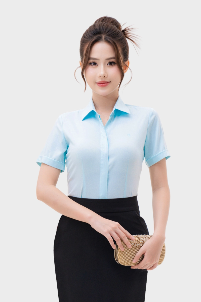 Áo sơ mi trắng nữ công sở ngắn tay cổ đức vải sợi tre cao cấp 23ASW-218 – Sự kết hợp hoàn hảo giữa phong cách thanh lịch và chất liệu cao cấp, mang lại vẻ đẹp tự nhiên và thoải mái cho nàng công sở.