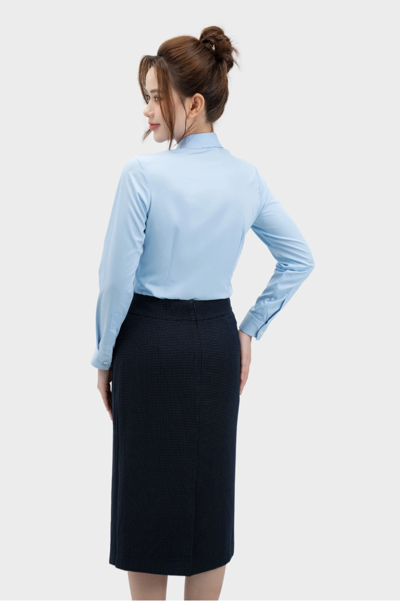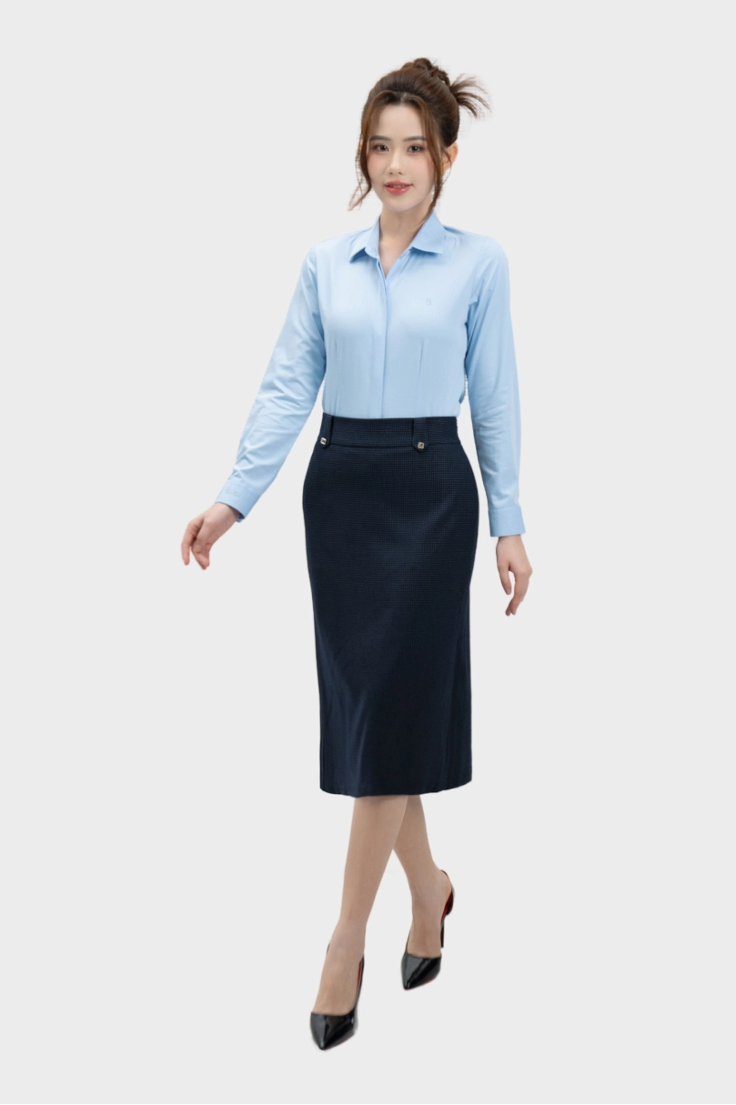- Chân váy nữ Thái Hòa 25CVW-262 dáng dài 2 lớp kẻ xanh than tôn dáng cao cấp