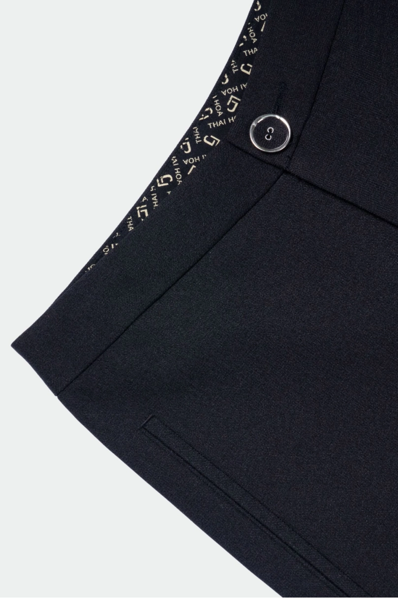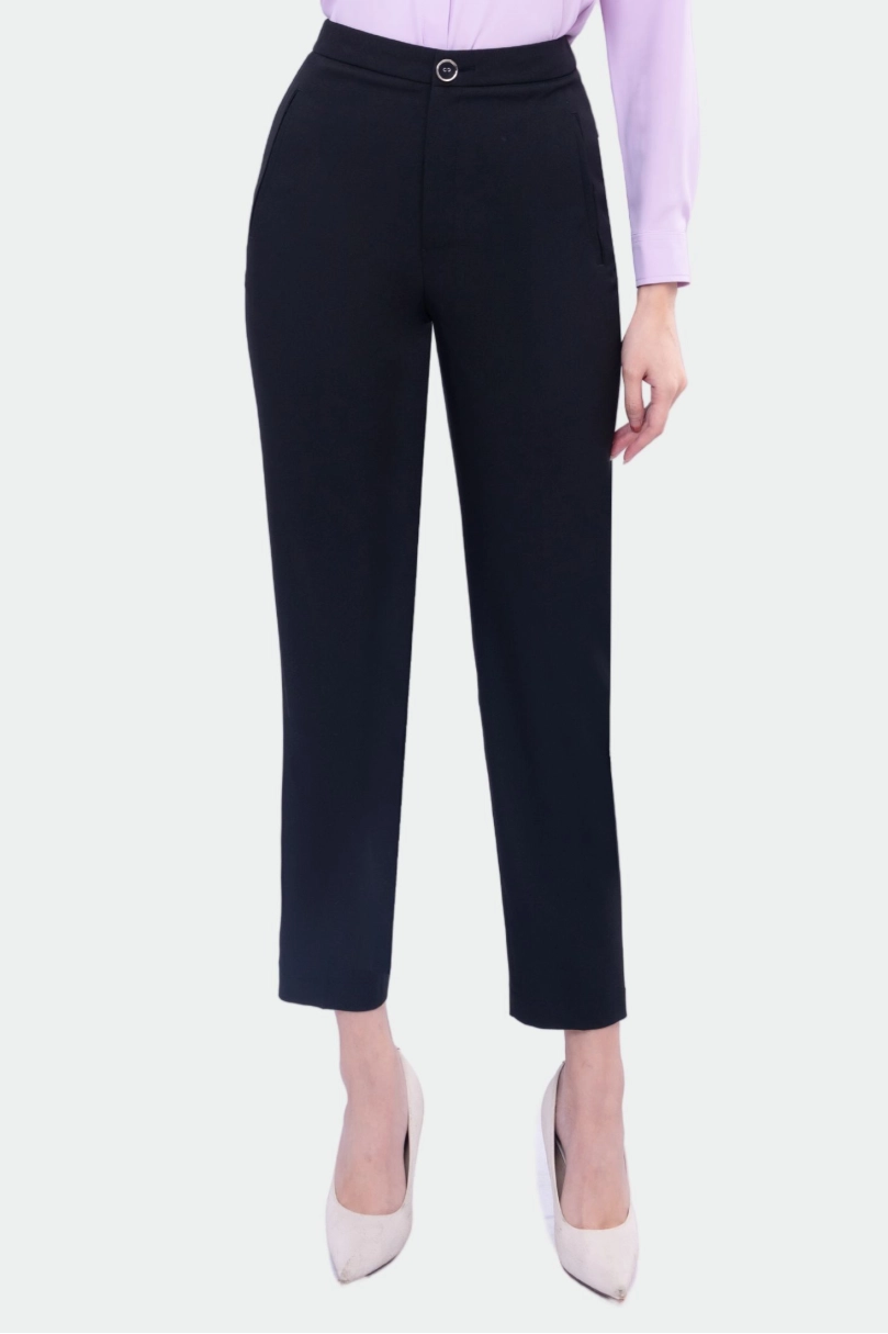 - 🎀 Chi tiết tinh tế: Cúc bọc tiệp màu, dáng quần thon gọn dần từ đùi đến mắt cá chân, tôn lên đôi chân thẳng dài.