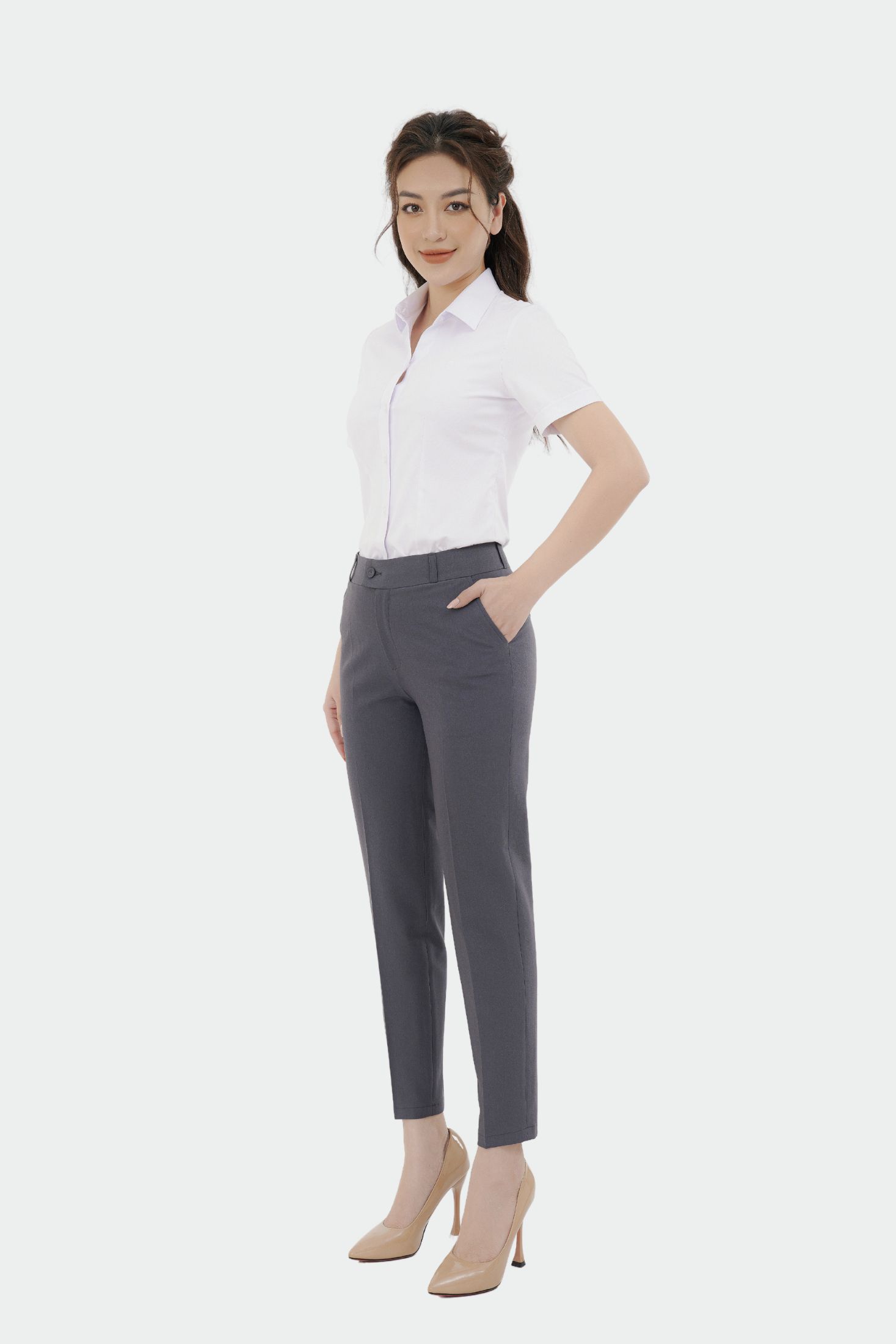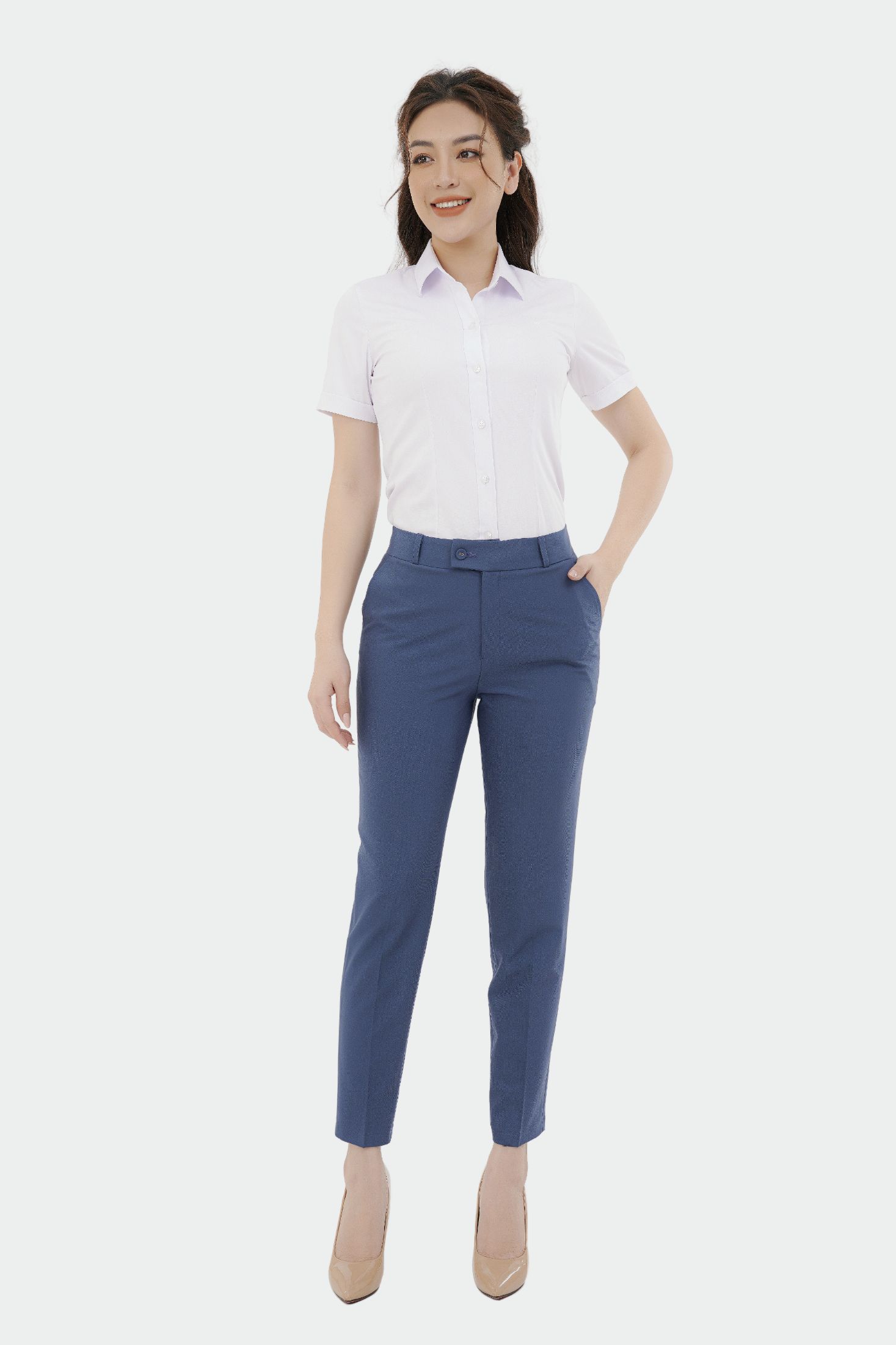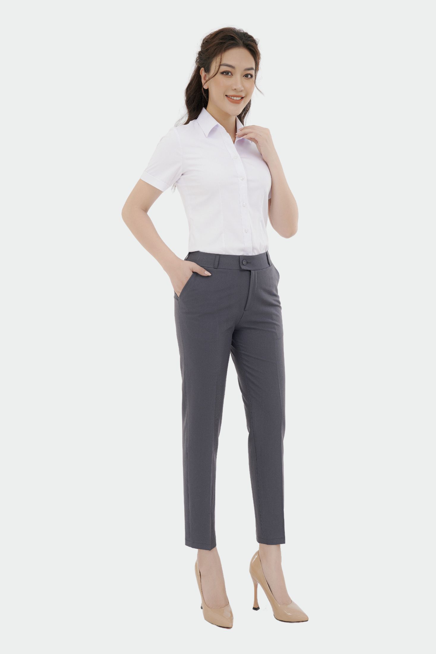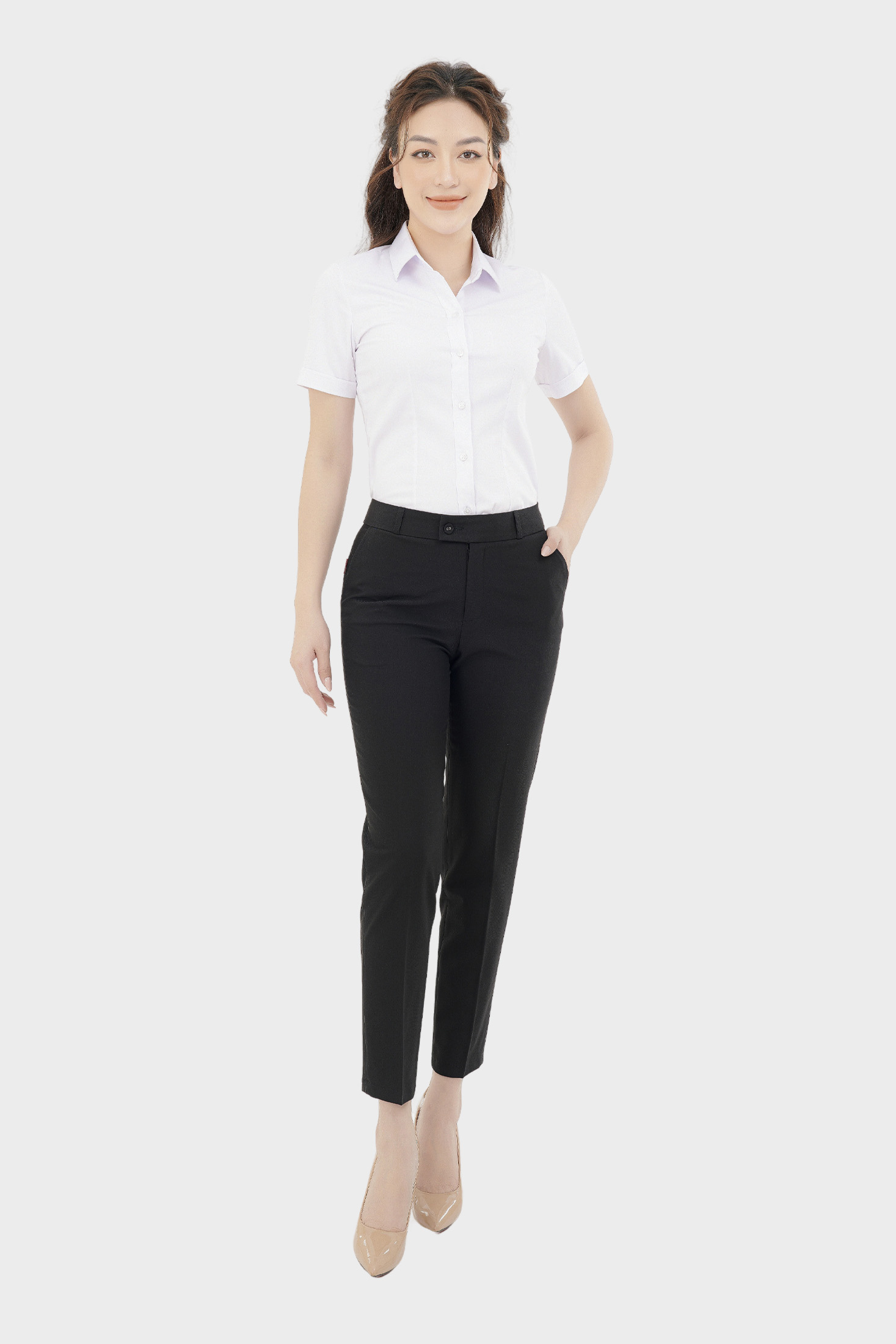 - Dáng dài ống đứng form regular, tôn dáng hoàn hảo, dễ kết hợp cùng áo sơ mi công sở.