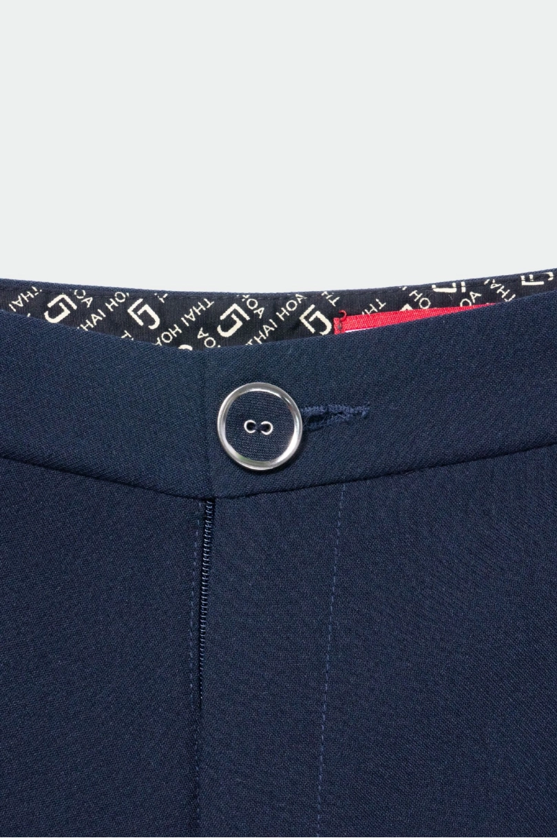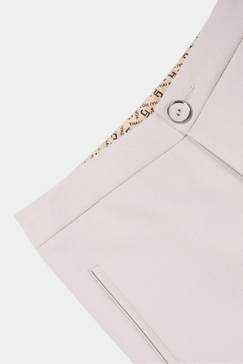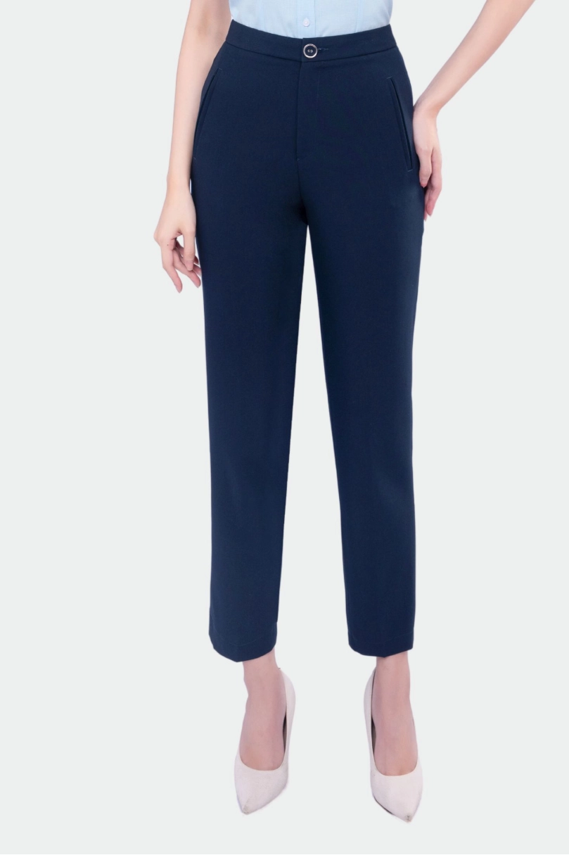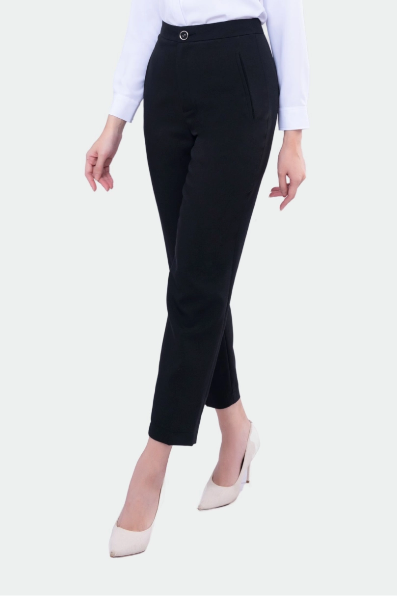 - Thiết kế tinh tế: Cúc bọc tiệp màu, form quần thon nhỏ dần xuống mắt cá chân giúp đôi chân trông dài và thon hơn.