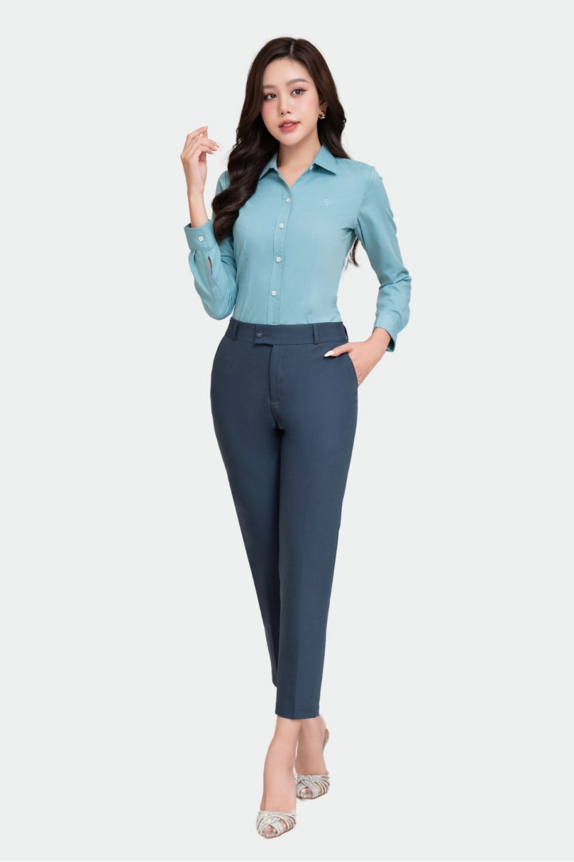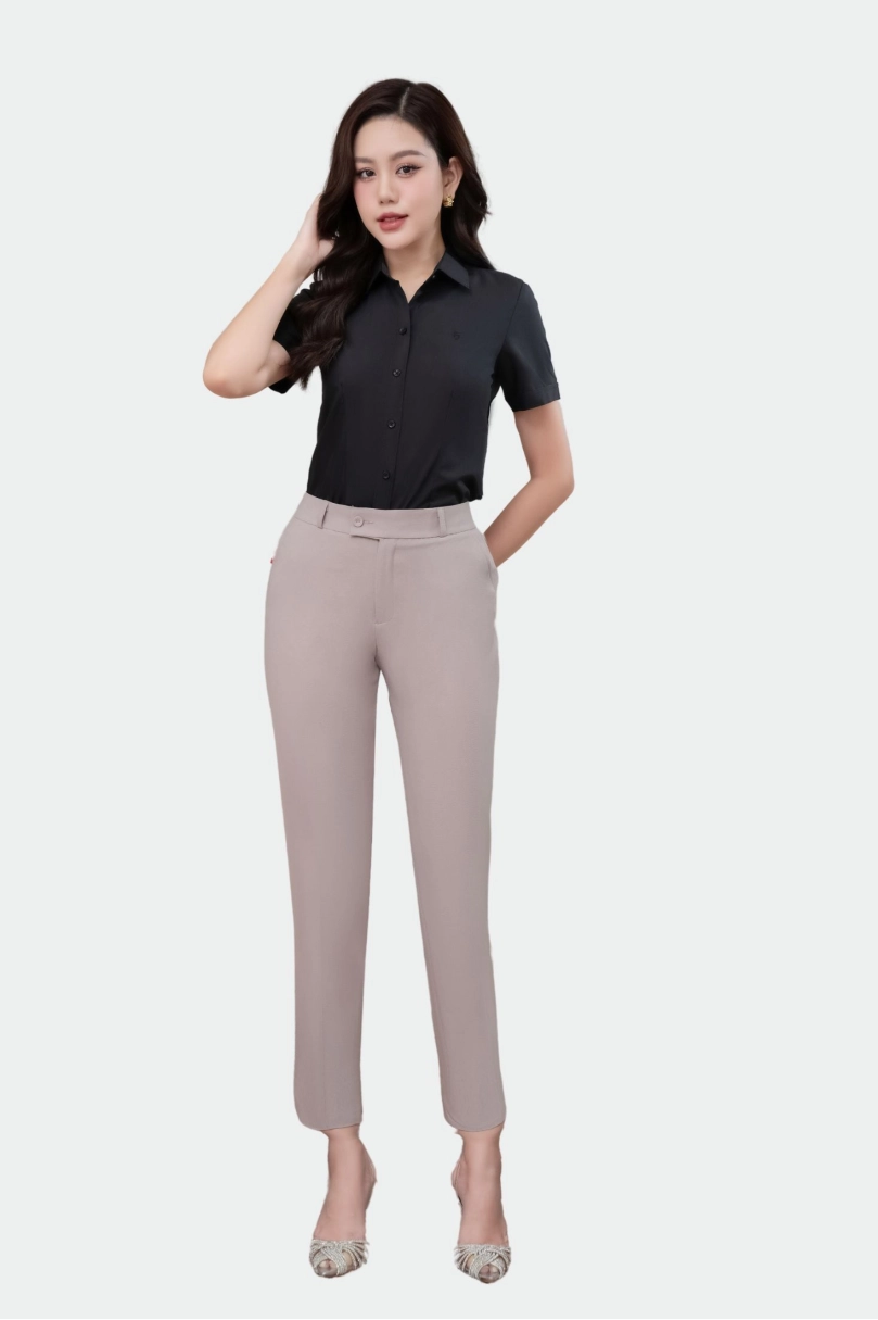 Quần ống suông nữ 25QAW-274 chất liệu vỏ hàu cạp cao 5 phân 2 cúc bản cạp trên rốn Thái Hòa