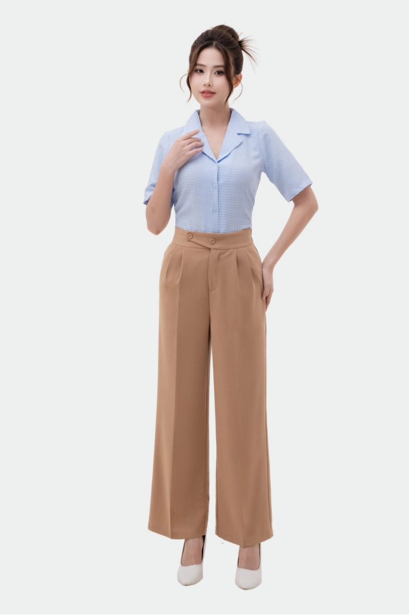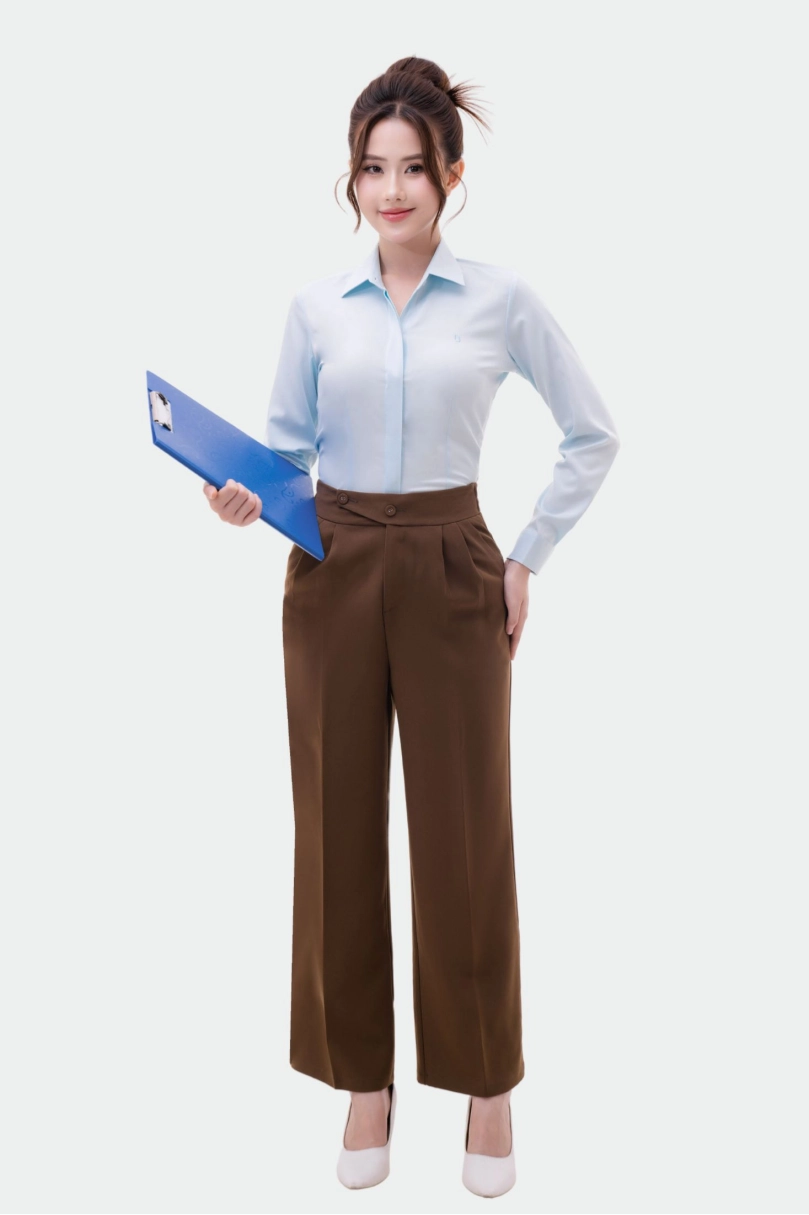 Quần ống suông nữ 25QAW-274 chất liệu vỏ hàu cạp cao 5 phân 2 cúc bản cạp trên rốn Thái Hòa