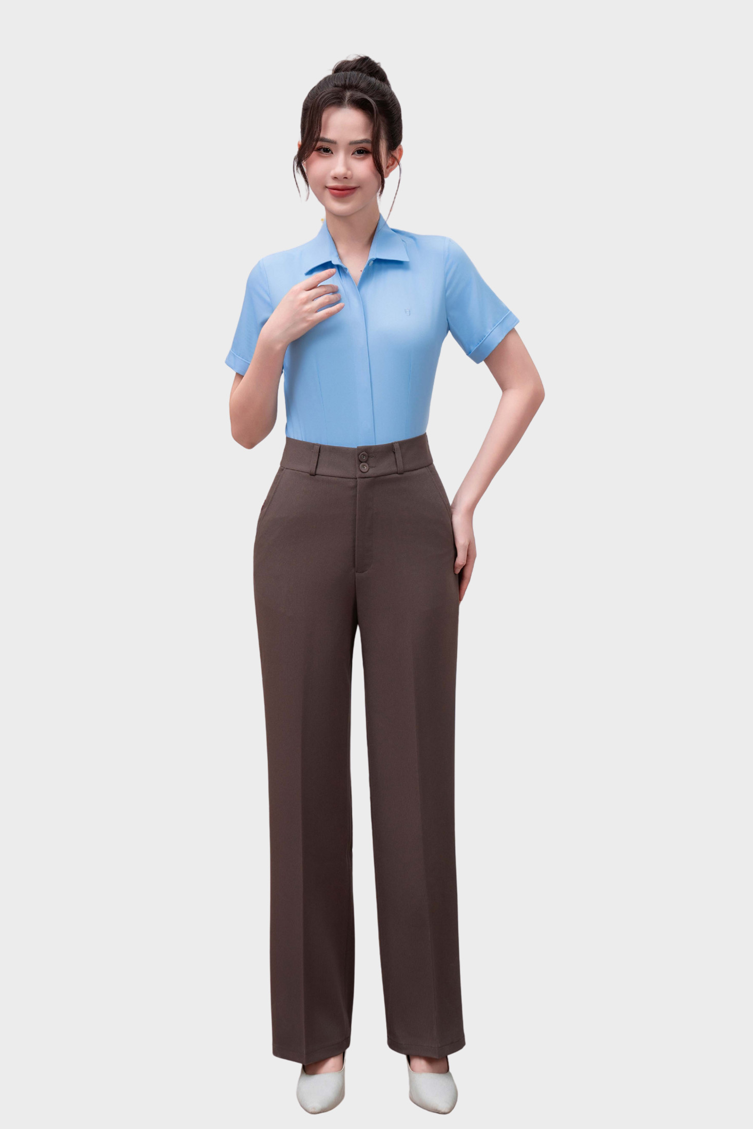 - Quần ống suông nữ 25QAW-274 chất liệu vỏ hàu cạp cao 5 phân 2 cúc bản cạp trên rốn Thái Hòa