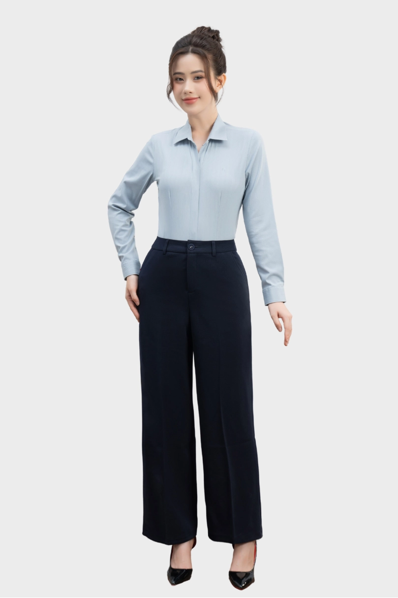 - Quần ống suông nữ 25QAW-277 Thái Hòa chất liệu Rayol phối Spandex cạp cao trên rốn bản cạp 1 cúc